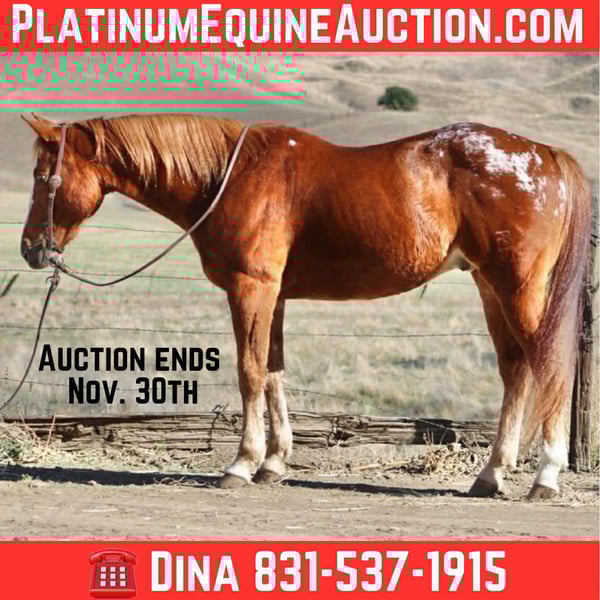ONLINE AUCTION Place your bids at www.PlatinumEquineAuction.com Starting Bid $3500 Auction ends November 30th, 2025 Need a new saddle? Check out White Rock Saddles on our website or Facebook A Willing Heart and a Good Mind. Cruz is a 10-year-old Appaloosa gelding standing 14.2 hands, and he’s been an absolute pleasure to have in the program. From day one, this horse has shown nothing but try. He’s come along beautifully — soft, willing, and always ready to please. Cruz lopes smooth, correct circles, has a nice stop, and works off a light neck rein. He’s been around cattle, pushed them up the lane, and helped with gathering. Out on the trail, he’s sure-footed, confident, and steady through anything — rocks, water, bridges, brush, and commotion are no big deal to him. He’s been ridden down busy streets and handles traffic, dogs, flags, tarps, and balls without a fuss. Cruz isn’t the kind you have to hold together — he’s naturally calm, non-spooky, and honest about every task you ask of him. He clips, ties, bathes, and hauls like he’s been doing it all his life, and he settles right in anywhere you take him. He stalls well, pastures quiet, and loves people — always the first to meet you at the gate, ears up and ready to go. Cruz is safe, and willing with a great foundation and the right attitude to go any direction you’d like. Whether you’re looking for a solid partner to grow with or a kind, dependable trail horse to enjoy for years, this boy will make you proud every ride. Dina – Longhorn Ranch, Paicines, CA 831-537-1915 Nationwide shipping available. ONLINE AUCTION Place your bids at www.PlatinumEquineAuction.com Starting Bid $3500 Auction ends November 30th, 2025 Need a new saddle? Check out White Rock Saddles on our website or Facebook