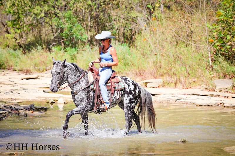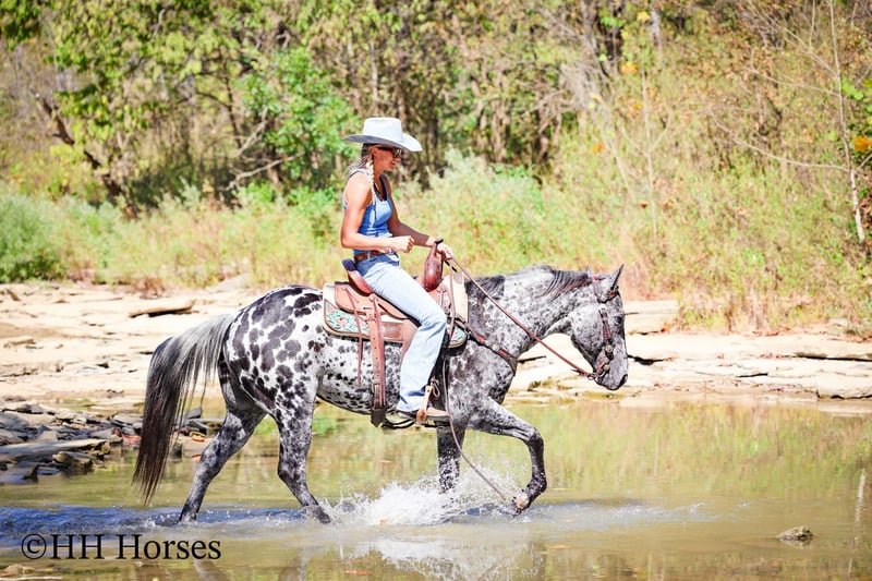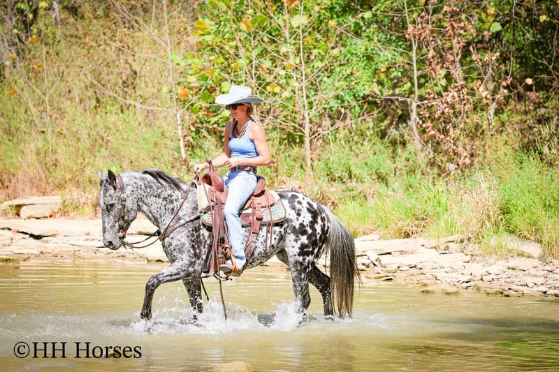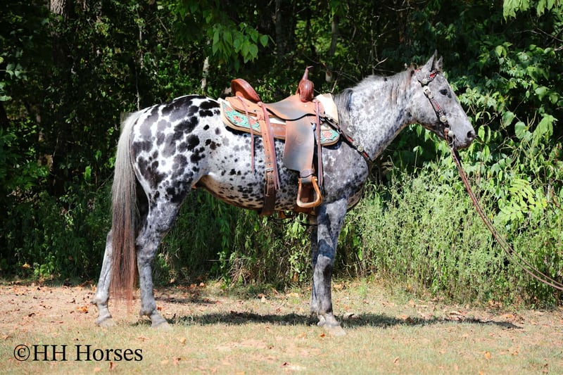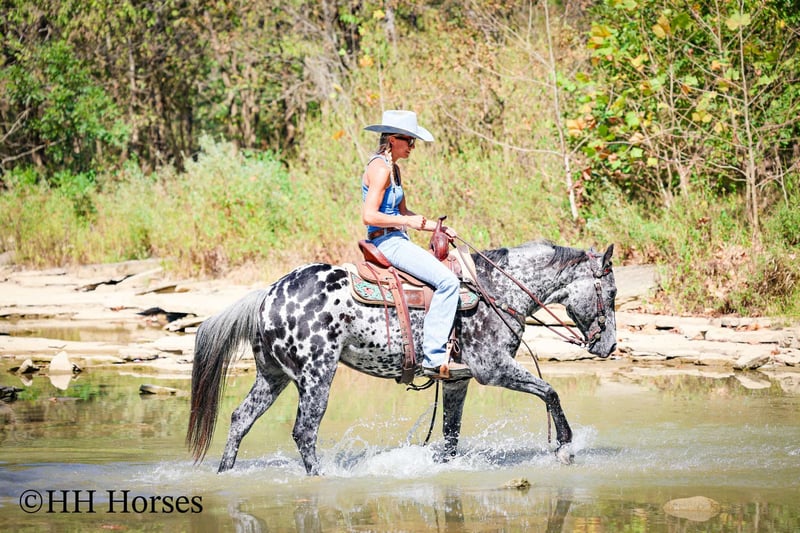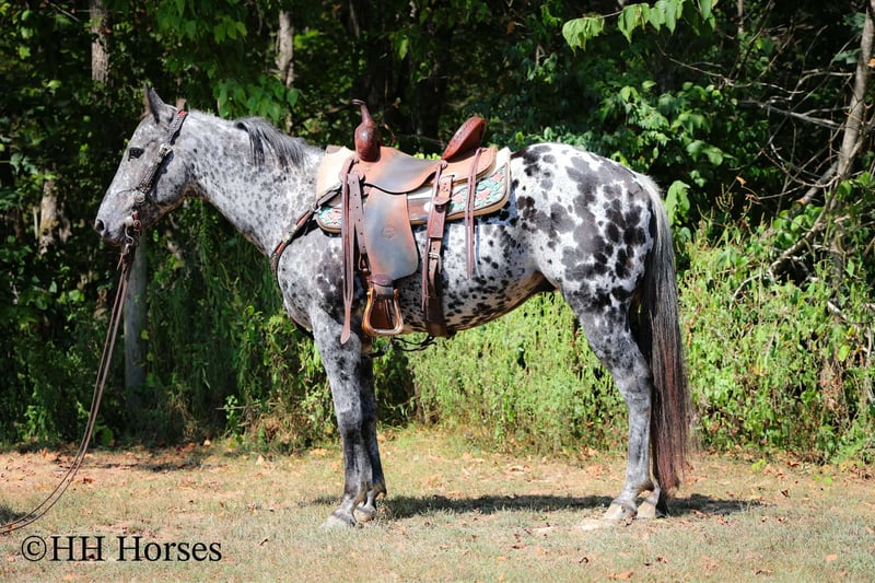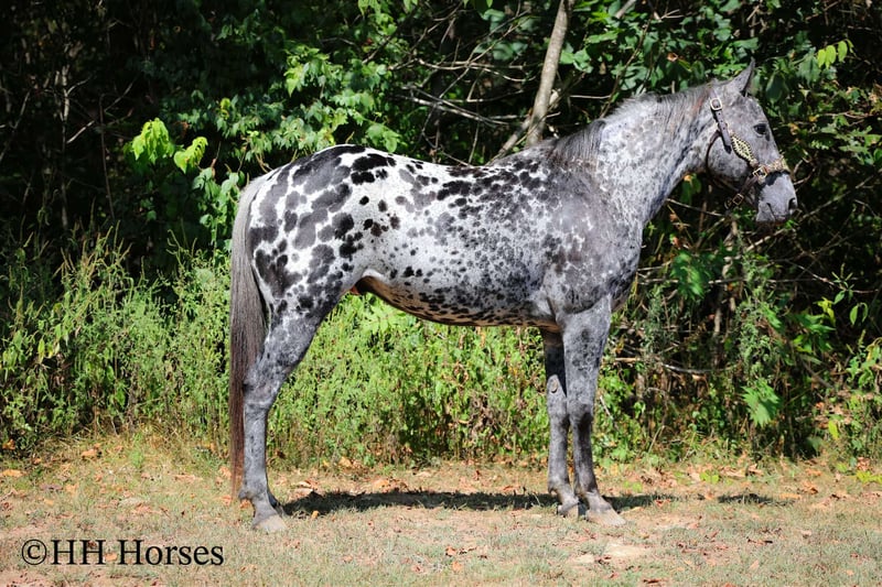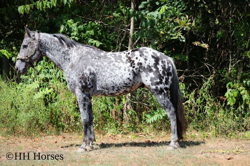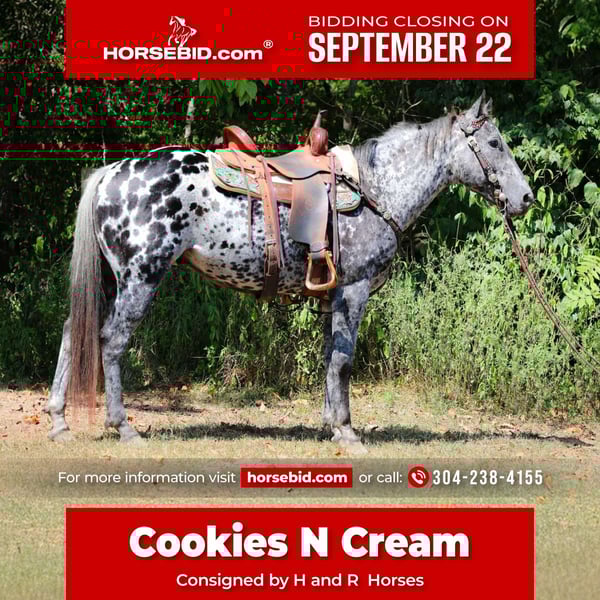 🍁𝒕𝒉𝒆 𝐅𝐀𝐋𝐋 𝑺𝒑𝒆𝒄𝒕𝒂𝒄𝒖𝒍𝒂𝒓🍁 Happening now thru MONDAY | SEPTEMBER 22nd - Available EXCLUSIVELY on HorseBid's website! For more details and to register visit: www.Horsebid.com CONSIGNOR CONTACT: H and R Horses 304-238-4155 LOCATION: Flemmingsburg , Ky BREED: Appaloosa REGISTERED: No COLOR: Black and White Leopard HEIGHT: 14.3 AGE: 10 GENDER: Gelding This is "COOKIES N CREAM", an extra flashy, loud colored, super gentle, versatile, and well trained BLACK AND WHITE LEOPARD APPALOOSA GELDING that the whole family can ride. This gelding has been shown Western and English successfully. He has been ridden by beginners, youth, and novice riders. He jumps a course and is brave and solid. He is has a nice collected jog and a nice extended trot. He will lope collected circles, stop easily, back up, and has a nice one hand neck rein. He has a good turnaround and he will move off of leg cues. He is gentle natured, been hauled to the shows, and unloads in unfamiliar territory quietly. He walks relaxed on a loose rein and will not go any faster than he is asked. He is a solid and seasoned trail mount that any level rider will appreciate. He is well built, stocky, and muscular. He stands 14.3 hands tall and is 10 years old. He's got the color, the brains, the training, the temperament, and the style to make his new owners proud. He's a cool horse with lots of ride, yet gentle enough for the kids to ride.
