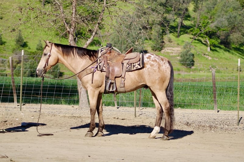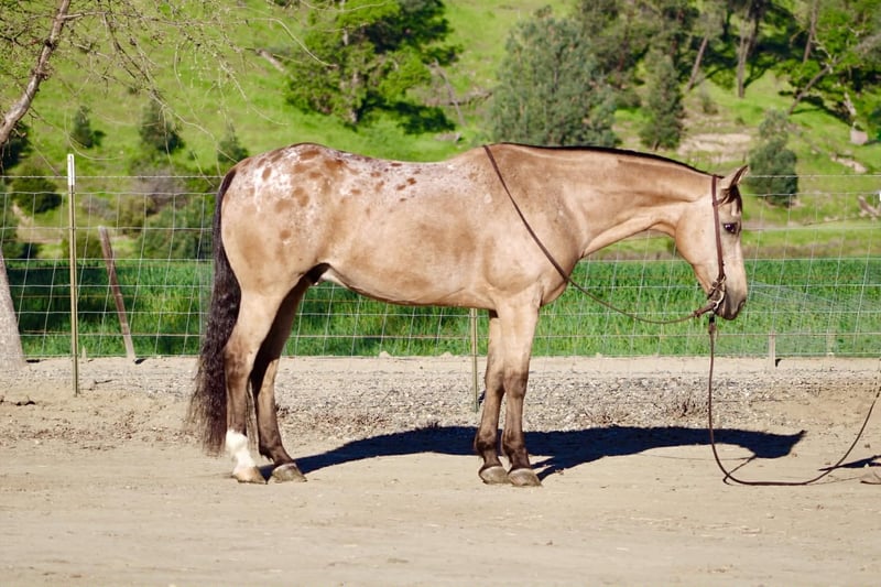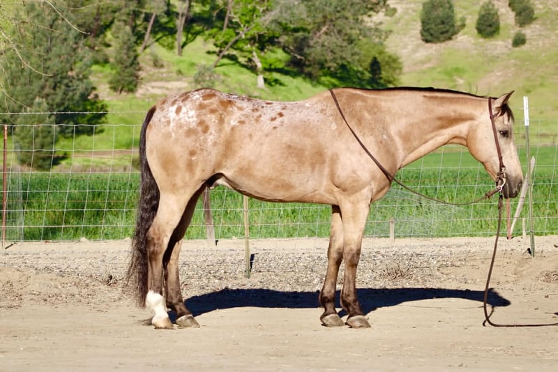 "AVAILABLE ON ONLINE HORSE AUCTION AT www DOT PlatinumEquineAuction DOT com BIDDING OPEN NOW thru SUNDAY | APRIL 5TH! *Final price will be determined on auction site* CONSIGNOR CONTACT INFO: Longhorn Ranch 831-537-1915 LOCATION: Paicines, CA BISCOTTI “He’s the reason people say, ‘I wish I had another one just like him.’” 12-Year-Old Buckskin Appaloosa Gelding • 15.1 Hands If your idea of a good horse is one that’s easy to get along with, smooth to ride, and doesn’t make life complicated… you’re going to love Biscotti. He’s the kind that doesn’t come with fine print. Biscotti is a buckskin Appaloosa gelding with a kind eye and an even better mind. He’s quiet in his nature, steady in his approach, and the same friendly horse every time you step on him — whether it’s been a day or a week. Ride him in the arena and you’ll feel a horse that is broke, balanced, and uncomplicated. He moves off your hand and leg without resistance, stays soft in the bridle, and carries himself in a way that just feels good. He’ll spin around, stop when asked, and back with light feel — all without needing to be micromanaged. He’s not looking for an argument… he’s looking to do his job. Biscotti has been used on the ranch, ridden down the road, and trusted with children, and that tells you a lot about the kind of mind he has. He’s the type that stays level-headed, doesn’t overreact, and takes care of whoever is on his back. Out on the trail or away from home, that same mindset shows up every time. Bridges, tarps, flags, uneven ground, new places — he handles it all without hesitation. Nothing phases him — he just goes on like he’s done it a hundred times. He’s the kind you can point, relax, and just enjoy the ride. Biscotti has also spent time helping new riders learn, and he’s the type that makes that experience a good one. He’s forgiving where it matters, patient when needed, and doesn’t take advantage of mistakes. He’s a confidence builder — not a confidence taker. On the ground, Biscotti keeps things just as simple. He’s easy to catch, stands tied, saddles up without a fuss, and handles like one that’s been there and done it. He gets along with other horses and settles into new places without needing a few days to “figure things out.” He’s just… steady and solid No quirks. No games. No guesswork. Just a safe, steady, good-minded gelding that you can trust — whether that’s on the ranch, down the road, or taking care of the kids. If you’re looking for one that is safe, seasoned, and genuinely enjoyable to ride — Biscotti is one you can count on. Longhorn Ranch Call/Text: Dina 831-537-1915 Paicines ca Nationwide shipping available