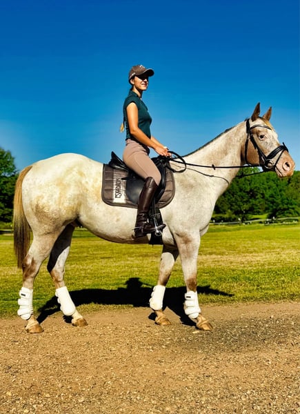 ONLINE AUCTION Place your bids at www.PlatinumEquineAuction.com Starting Bid $3500 Auction ends December 29th, 2024 Need a new saddle? Check out White Rock Saddles on our website or Facebook! Trigger is a striking 14.3-hand, 2014 model Appaloosa gelding with a gorgeous strawberry roan coat and an athletic, well-built frame. He’s the ultimate all-around gelding, ready to be your dependable partner. This talented gelding truly does it all—he rides English, Western, bareback, and even bridleless. Trigger is trail- and traffic-safe, with smooth gaits and a light, responsive mouth. He has a beautiful extended trot and easily rates back to a walk. He stops effortlessly with a simple “whoa” and has been used to train young barrel racers, showcasing his adaptability and patience. He’s completely desensitized to tarps, balls, flags, and more, making him ideal for any level of rider. On the trail, trigger always takes care of his rider. His calm, easygoing style allows you to enjoy the scenery. Put him on a path, drape the reins around his neck, and he will walk along with minimal guidance. He rides out alone or in a group without preference, confidently leading the pack or contently bringing up the rear. He is not herd-bound and will quietly ride away from the group. If you need to stop, no worries—throw the reins around the horn, tell him “whoa,” and he’ll stay put. Trigger crosses water, navigates ditches, climbs and descends hills, and handles rough terrain with ease. He has even been ridden down the main highway into town, unbothered by traffic. He will go anywhere you point him without hesitation. His laid-back attitude will put you at ease. Friendly, reliable and respectful, Trigger is a true “in-your-pocket” horse who will always greet you at the gate. Whether you ride him daily or once a month, he remains the same steady, beginner-friendly horse. His calm, easygoing temperament makes him a favorite for riders of all ages and experience levels. He loves grooming, putting his head on your chest, and soaking up all the scratches. Trigger is barefoot, sound, and requires no maintenance. He is up-to-date on vaccines and deworming, hauls easily, and stands quietly for both the vet and farrier. If you’re looking for a dependable, versatile gelding with a kind heart and exceptional training, Trigger is ready to join your barn. Don’t miss out on this one-of-a-kind horse! If you have any questions or would like to meet him feel free to reach out! Located in Texarkana, TX. Contact Julia Gonzalez 430-318-8474 with any questions. ONLINE AUCTION Place your bids at www.PlatinumEquineAuction.com Starting Bid $3500 Auction ends December 29th, 2024 Need a new saddle? Check out White Rock Saddles on our website or Facebook!