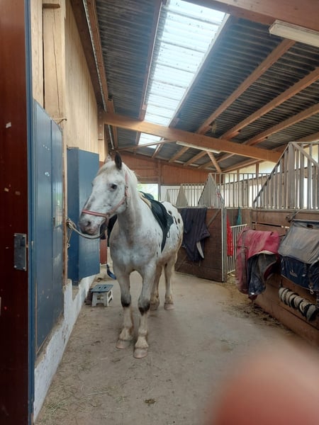 Schweren Herzens gebe ich meinen wunderschönen Appaloosa-Wallach Henry (laut irischem Pass: Granarde Apache) aus privaten Gründen ab – ausschließlich in beste Hände und mit viel Auslauf. Henry wurde im Januar 2011 in Irland geboren und ist ein ausdrucksstarker, robuster Appaloosa mit einem Stockmaß von ca. 1,63 m. Er ist gechippt, regelmäßig geimpft, schmiedefromm und besitzt sehr gute, stabile Hufe. Henry ist ein sehr menschenbezogenes, ehrliches und braves Pferd im Umgang. Er genießt Aufmerksamkeit, ist verschmust und absolut zuverlässig im täglichen Handling. Im Gelände ist er ein absolutes Verlasspferd – mutig, klar im Kopf und souverän. Er ist herdengewohnt und lebt problemlos im Offenstall. Aufgrund einer Empfindlichkeit benötigt er Heulage oder gedampftes Heu, womit er aber komplett beschwerdefrei ist. Henry ist kein Anfängerpferd. Er braucht eine klare, ruhige und konsequente Führung, dann ist er ein absoluter Traumpartner. Preis: 5.500 € VB Wichtig: Platz vor Preis – ich wünsche mir ein Zuhause mit viel Bewegung, artgerechter Haltung und echter Zuwendung. Bei Interesse freue ich mich über eine Nachricht mit kurzer Vorstellung. Kontakt gerne über WhatsApp unter der Nummer +49 176 32377280