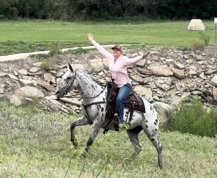 ONLINE AUCTION Place your bids at www.PlatinumEquineAuction.com Starting Bid $3500 Auction ends September 29th, 2024 Need a new saddle? Check out White Rock Saddles on our website or Facebook! “Santo” is a 14.1H, 14 yr old Appaloosa gelding. If you’re looking for the best of the best when it comes to color, safety, ease to handle/ride, personality and gentleness, they just simply don’t come better than Santo. He’s an absolute SAINT the whole family can enjoy. The very smallest babies up to the novice adults will be safe on this guy! He is extremely easy to ride, neck reins perfectly, switches gaits only when asked, stop when he’s told to and has absolutely ZERO buck, bolt, rear or spook. Santo has been with a family full of kids and has done all the things kids can think of on their trusty steed. He’s dabbled in the play day events, seen countless amounts of trails, roped some slow cattle, and even been jumped! He would be the perfect first horse or horse for a kid looking to go have fun with something experienced in practically everything! Santo would also be the perfect trail/pleasure horse for anyone needing a safe, predictable, COMFORTABLE, sure footed, sane mount. Leave him off a day or 6 months and he’s the same horse every time. He is so much fun to ride and will put a smile on anyone’s face that swings a leg over him! He has one of the best people pleasing personalities and is so SWEET!! He loads, leads, stands, and ties great. He’s traffic, car, crane, golf cart, city, Santo is UTD with teeth, feet and coggins and ready to go to his new family! You won’t want to miss this gorgeous gelding that is sure to keep anyone obsessed with going to the barn to ride! Go to his website page northtexashorsecompany.com/santo for more pictures and footage! Please call Blair with North Texas Horse Company for more info at 817-757-3046. We are located in Weatherford, TX and can help arrange affordable shipping to anyone!! ONLINE AUCTION Place your bids at www.PlatinumEquineAuction.com Starting Bid $3500 Auction ends September 29th, 2024 Need a new saddle? Check out White Rock Saddles on our website or Facebook!