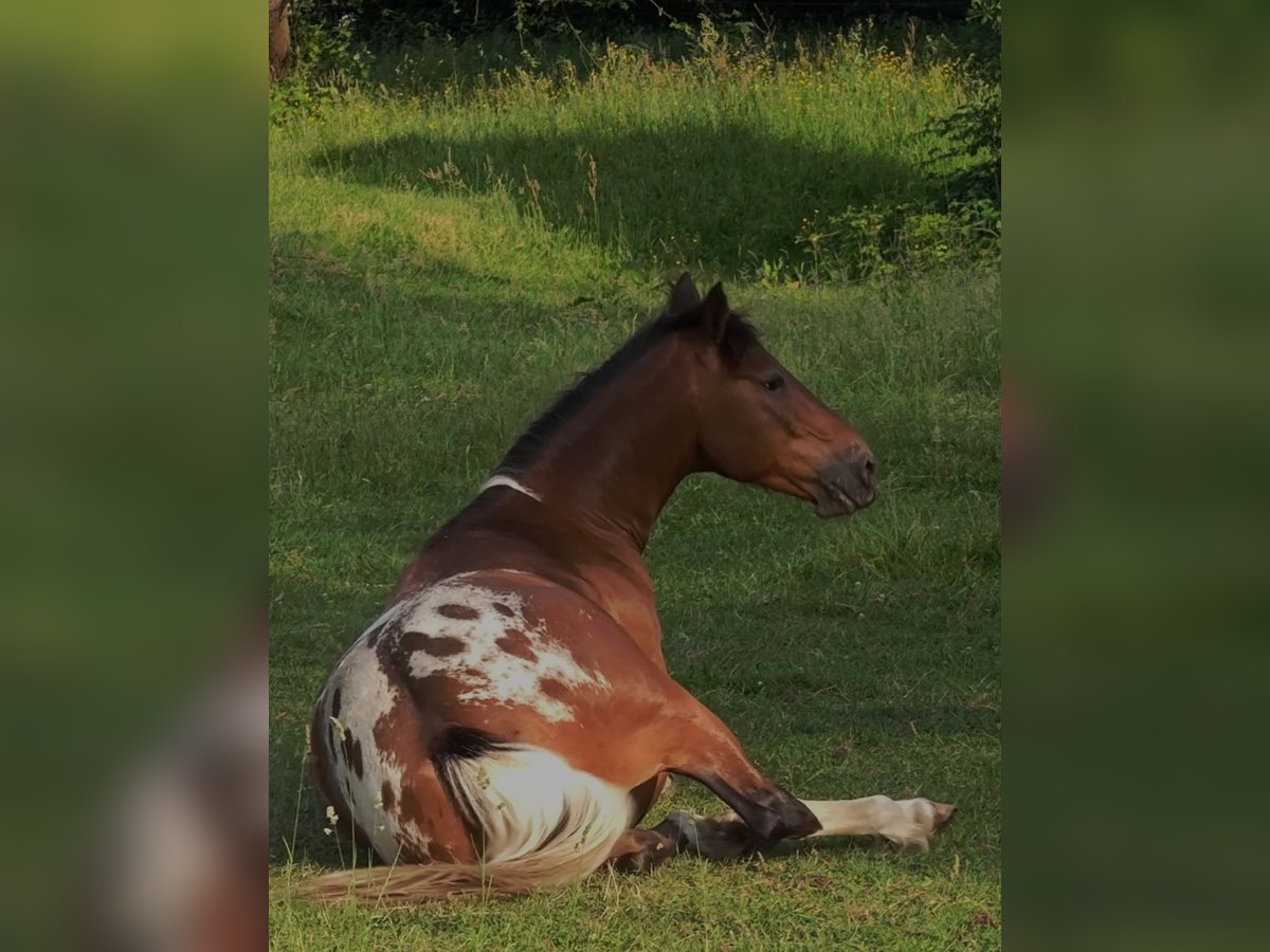 Mein robuster Apaloosa-Mix Wallach Jay sucht ein neues Zuhause. Da sich einige Veränderungen in meinem Leben ergeben haben, finde ich einfach nicht mehr die Zeit um ihm gerecht zu werden und bevor er bei mir verwahrlost, suche ich lieber jemanden der ihn wieder fordert. Er ist 2010 geboren, hat ein Stockmaß von 155cm und läuft Barhuf. Verladen, Tierarzt oder Schmied sind überhaupt kein Problem. Jay, eigentlich Jason, kommt ursprünglich aus Frankreich (deshalb kein deutscher Equiden-Pass) und wurde von da nach Irland verbracht und für Wanderritte genutzt. Ich habe ihn Western geritten, das hat gut funktioniert obwohl ich blutiger Anfänger war. Er wird als angeritten verkauft, da ich nicht weiß wie gut er wirklich ausgebildet ist. Meine Reitlehrerin hat mal getestet was er kann und ist mühelos fliegende Galoppwechsel geritten, er könnte also ziemlich gut ausgebildet sein. Bodenarbeit an der Longe, auch mit Stangen oder Hütchen, funktioniert auch problemlos. Durch die mangelnde Zeit meinerseits, hat er jetzt über ein Jahr lang nichts mehr gemacht und müsste wieder antrainiert werden. Auch wenn er ein ruhiges Gemüt hat muss man sich durchsetzen können, sonst tanzt er einem auf der Nase rum. Wie bereits erwähnt ist Jay sehr robust, er war nie krank oder verletzt, braucht(und will) keine Decke im Winter und ist sehr leichtfuttrig. Platz geht auf jeden Fall vor Preis. Reine Boxenhaltung ohne Auslauf kommt nicht in Frage. Für mehr Infos oder bei Fragen einfach melden.