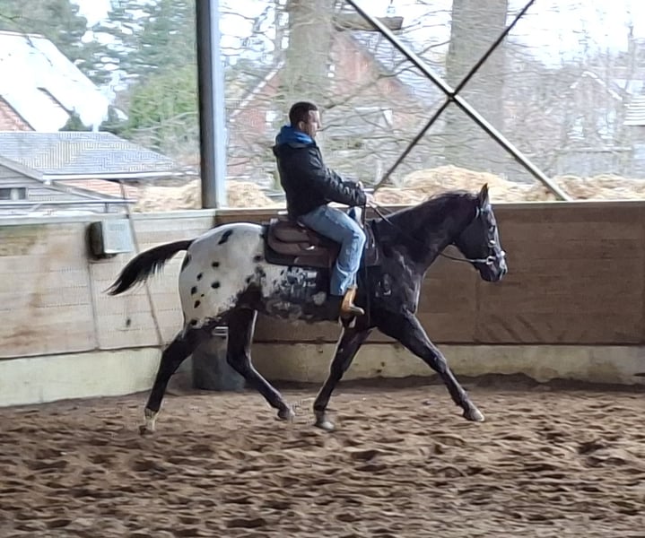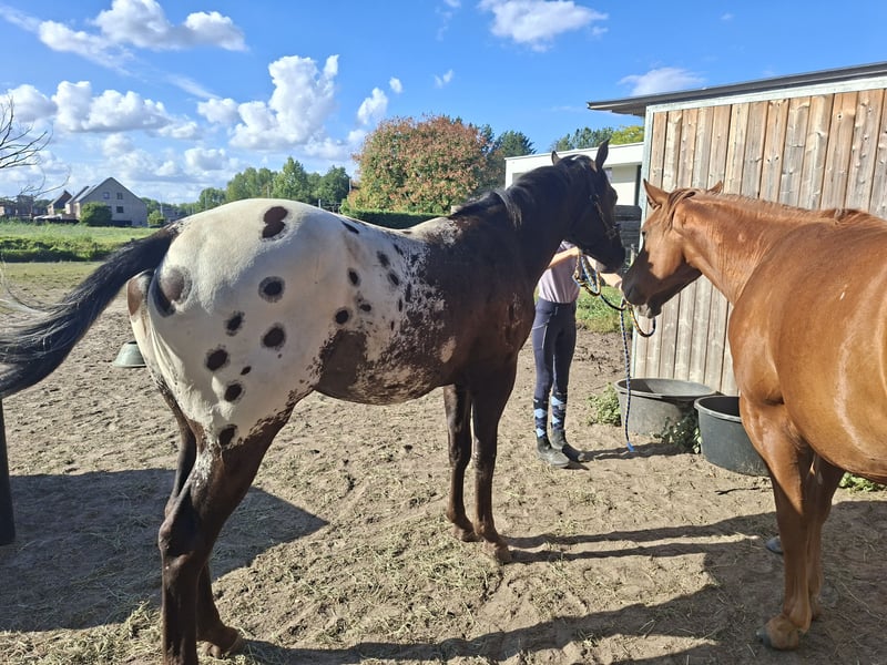 Super mooie Appaloosa ruin. Hij is drie jaar en is super mooi gebouwd met een zacht karakter. En een grote blanket met spots. Hij kan gemakkelijk in een kude staan met andere paarden. Hij is proffesioneel getraind met een basis opleiding onder het zadel en in de koets. Hij is een allrounder die verder kan (moet) getraind worden. Wordt verkocht wegens stopzetting. Nog meerdere appaloosas te koop. fb: Golden B Appaloosa Horses