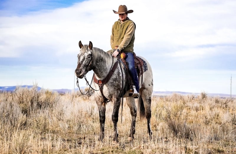 ⚜️ 𝓗𝓮𝓻𝓲𝓽𝓪𝓰𝓮 𝐖𝐢𝐧𝐭𝐞𝐫 𝓒𝓵𝓪𝓼𝓼𝓲𝓬⚜️ Happening now thru MONDAY | DECEMBER 29th - Available EXCLUSIVELY on HorseBid's website! For more details and to register visit: www.Horsebid.com CONSIGNOR CONTACT: Sand Creek Ranch 208-821-2351 LOCATION: Saint Anthony, ID BREED: Appaloosa REGISTERED: Yes REGISTERED NAME: BT Foxy Dream COLOR: Brown/White HEIGHT: 15.1 AGE: 3 GENDER: Gelding Montana is a coming 4 year old registered Appaloosa gelding. Not only does this guy have a full mane and tail but he is conformationally good looking and has the coolest looking color! He has always been an in your pocket gelding with a puppy dog personality. He is very friendly and enjoys being in peoples company. Montana will come over to the shake of a grain bucket or will be the first meet you at the gate. Montana is confident, quiet, and willing to please. He goes where he’s pointed and rides off alone or in a group. Montana will lope nice collected circles, has a good stop, neck reins and is starting to spin nicely. Montana is light in your hands and throughout his body. He will side pass move his shoulders, hind quarters and he will lay down on cue. Montana is sacked out to a variety of things, will go over a teeter totter bridge, noodles obstacles, tarps, big balls, ATVs, etc… anything new we’ve ever thrown at him he accepts with confidence and ease. Montana has been started on the hot heels. He also drug heavy logs and is no stranger to weight in the horn or seeing things on the end of a rope. Montana has been rode both in the arena and outside. He steps out nicely, on the desert and on the trails. He will cross logs and water with no problems. He is sure footed knows how to pick up his feet when navigating through various different terrain. Montana has been rode by a variety of riders and has handled them all with ease. Montana stands around 15.1 hands. He will pick up all of his feet, stand tied, trailers and hauls with no problem. This gelding has all the potential in the world, a solid foundation, and easy going personality. He sells with a current PPE.