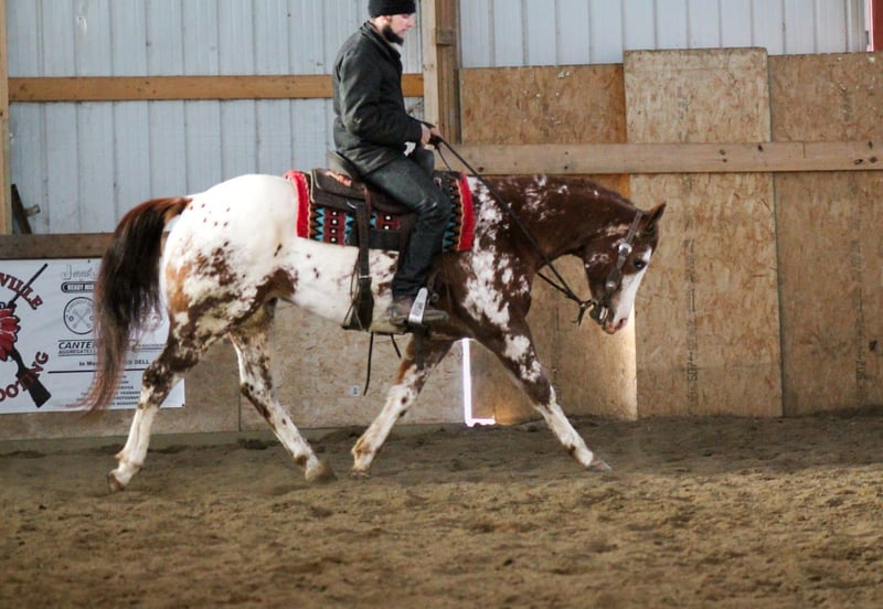 ⚜️𝐓𝐇𝐄 𝓗𝓮𝓻𝓲𝓽𝓪𝓰𝓮 𝐖𝐢𝐧𝐭𝐞𝐫 𝓒𝓵𝓪𝓼𝓼𝓲𝓬⚜️ Happening now thru MONDAY | DECEMBER 29th - Available EXCLUSIVELY on HorseBid's website! For more details and to register visit: www.Horsebid.com CONSIGNOR CONTACT: Triple B Horses 641-680-1707 LOCATION: Cincinnati, IA BREED: AHC REGISTERED: Yes REGISTERED NAME: Got An App For That COLOR: Appaloosa HEIGHT: 15.1 AGE: 4 GENDER: Gelding “Got an app for that” (A.K.A Tinder) is a 2021 model AHC gelding standing 15.1 hands tall. This gelding is as picture perfect pretty as you can ask one to be! Every where he goes everyone is turning heads and drooling over his good looks! Not only is he drop dead gorgeous but he GENTLE! He loves all the attention you will give him! His ground manners are impeccable! Tinder is easy to catch, stands tied, saddles easy, great for the farrier and vet. He is sooooo much fun to ride! Tinder is one hand broke, lopes collected circles, stops like a car that just got a brand new set of breaks! He is smooth in his transitions, side passes, and pivots. Tinder also knows how to side pass to the mounting block or anything you choose to use to get on! On the trails he will cross anything you put in his path! He is as sure footed as they come and has seen more miles on the trails than a Polaris ranger. He is familiar with the camping lifestyle and not spooky of anything that comes with that environment! Tinder has also been rode through town! We had everyone stopping us to come and pet him drooling over how pretty he is! Tinder has easily became the barn favorite and it’s no doubt why! He is the kind of gelding everyone can get on and enjoy! We were told he is started on the head side and coming along nicely but we have not personally roped live steer on him ourselves! Tinder is 100% sound and sane in every way! Please give me a call I would LOVE to talk about Tinder- 6416801707