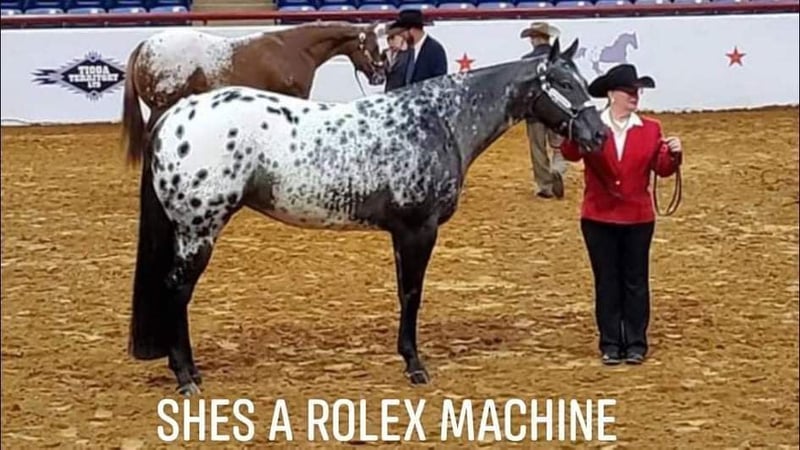 Waps Rolex ApHC Appaloosa 2021 pot. kasztanowaty wałach z derką i pointami 156 masa kija (wciąż rośnie) Ojciec: Waps Rolls Royce (160 cm) Matka: Shez A Rolex Machine (158cm) wielokrotna Res. i World Champion ApHC ▪︎ 5 panel N/N 30 dni pod siodłem bezpośrednio od hodowcy Jeżdżony w lesie, idzie z przodu lub z tyłu w grupie Chód, kłus, kłus, zatrzymanie i cofanie Prawdziwa przyjemność z jazdy!!! gołe kopyta, bardzo dobra jakość kopyt Paszport konia, szczepiony, regularnie odrobaczany, kontrola dentystyczna i pielęgnacja kopyt. Lokalizacja w Luksemburgu Tel: +352-621-328144 Mówimy po niemiecku, francusku i angielsku