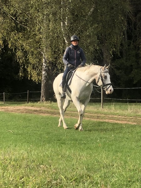 Zum Verkauf steht schweren Herzens „Olaf“, ein fünfjähriger Appaloosawallach in der Farbe few Spot. Olaf ist ca 1,62m groß und stabil gebaut, daher deckt er auch größere Reiter ab. Er hat ein blaues und ein dunkles Auge, was ihn einzigartig macht. Seit Absetzer ist er in meinem Besitz. 2024 habe ich ihn erfolgreich auf der EWU Landesmeisterschaft vorgestellt und er wurde Bestes Jungpferd Basis und Trail und Landesmeister Junior Pleasure und Junior Trail. Leider musste ich aber Fairness halber feststellen, dass ihm das Training mit Turnierambitionen keinen Spaß macht. Daher suche ich ausschließlich einen Lebensplatz für ihn als Freizeitpferd. Oberhof untergebracht und wird dort viel ins Gelände geritten. Ob auf weiter Flur oder durch das Dorf - er ist immer brav. Auch unter schon etwas reiterfahren Kindern läuft er brav in allen drei Grundgangarten. Aufgrund seines jungen Alters kommt er aber nur für ambitionierte Reiter oder Wiedereinsteiger in Frage. Er ist kein Anfängerpferd. Olaf ist total sozial und kann in einer gemischten Herde stehen. Da er Leopardgenträger ist, ist er Nachtblind. Das muss man bei einer Offenstallhaltung beachten. Er fährt problemlos Hänger und ist beim Schmied und Tierarzt absolut problemlos. Im Umgang ist er ein wahrer Schatz und möchte immer alles richtig machen. Olaf ist 5 Panel N/N, aber MiM Träger und daher unter Wert abzugeben. Er zeigt dato keine Symptome. Bei Interesse kann ich gerne aktuelle Videos von Gelände und Platz schicken. Olaf hat Papiere vom Aphc und einen Pass vom AphcG. Platz vor Preis!