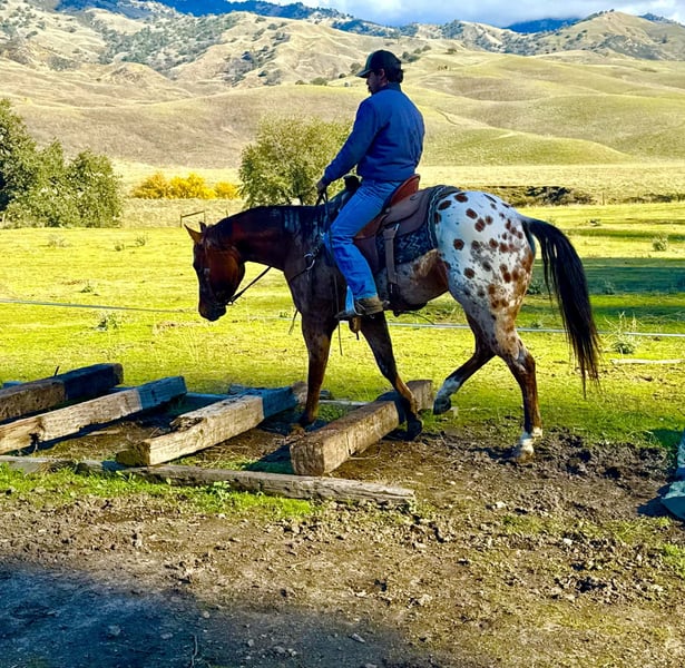 ONLINE AUCTION Place your bids at www.PlatinumEquineAuction.com Starting Bid $3500 Auction ends December 7th, 2025 Need a new saddle? Check out White Rock Saddles on our website or Facebook Crime Striker IM –Registered 2020 Appaloosa Gelding, 15.2 Hands • Blanket & Spots • Foundation Appaloosa Breeding. If you’ve been searching for your next lifelong companion — the kind you can trust, enjoy, and rely on for years — Crime Striker IM deserves a serious look. He isn’t just a pretty gelding with color. He’s the result of generations of purposeful Appaloosa breeding, and he carries himself with the steady, thoughtful way that comes from a good mind paired with a good upbringing. Crime Striker IM already has real miles under his belt and a solid foundation that shows the moment you sit on him. He goes low-headed, stays soft in the bridle, and lopes a clean, correct circle. His stop is smooth, his cadence is natural, and he rides with the kind of level, settled mindset that makes every ride feel the same — honest, dependable, and uncomplicated. He’s seen all the right things: flags, tarps, bridges, water, rocks, brush, and open country. He meets each obstacle with a thinking attitude, never in a rush, never bothered. Out on the trail he’s steady and sure, willing to ride out alone or with company, and comfortable in new places. He’s gathered cattle, stepped through ranch chores, and carries himself like a horse raised to handle real work without fuss. At 15.2 hands, he has the size and movement to shine in either Western or English tack. He’s been ridden English and carries a long, sweeping stride that gives him a polished look in any arena. Whether you want a versatile ranch gelding, a handsome all-arounder, or an elegant English prospect, he’s got the build, the style, and the brain to fit the job. His pedigree backs all of this up. Crime Striker IM is sired by Star Striker IM, a horse tracing back to Awestruck, a line known for good bone, dependable minds, and lasting soundness. His dam, Dunes Desire, brings in Imaginate and The Crime Seen, foundation Appaloosa names known for producing correct, durable, sensible horses with the kind of disposition people look for. This is a gelding bred to last. Around the barn, he’s just as easy. Friendly, kind, and straightforward to handle. He meets you at the gate, stands quiet to clip, tie, shoe, and saddle, and settles easily in a stall or pasture. He hauls well, steps off relaxed, and carries himself with a maturity that’s impressive for his age. Crime Striker IM is a young gelding with miles, manners, color, and the kind of foundation you can build a lifetime on. If you’re looking for a partner you can enjoy now and appreciate for many years to come, he’s standing here ready. Located at Longhorn Ranch – Paicines, California Contact: Dina 831-537-1915 Shipping available nationwide ONLINE AUCTION Place your bids at www.PlatinumEquineAuction.com Starting Bid $3500 Auction ends December 7th, 2025 Need a new saddle? Check out White Rock Saddles on our website or Facebook