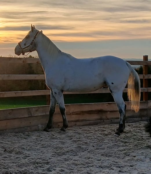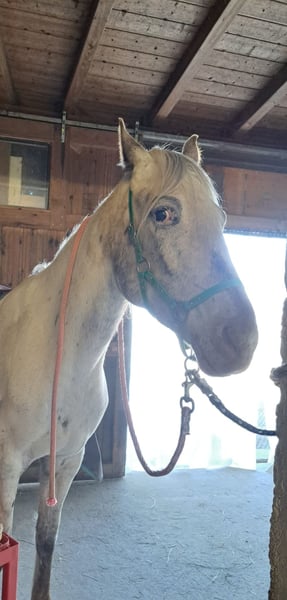 Hallo,biete hier meinen 6 jährigen Appaloosa Wallach aus zeitlichen Gründen zum Verkauf an. Kennt Reitergewicht, Schritt und Trab funktioniert schon unterm Reiter, wurde aber nicht weiter gefördert. Braucht einen erfahrenen Pferdemenschen der ihm genügend Sicherheit gibt. Kein Anfängerpferd. Er ist gesund, brav im Umgang, brav beim Schmied, geht barhuf, Verkehrssicher, kinderfreundlich, Tetanus geimpft. Brav in der Bodenarbeit. Passendes Zubehör kann mit erworben werden.