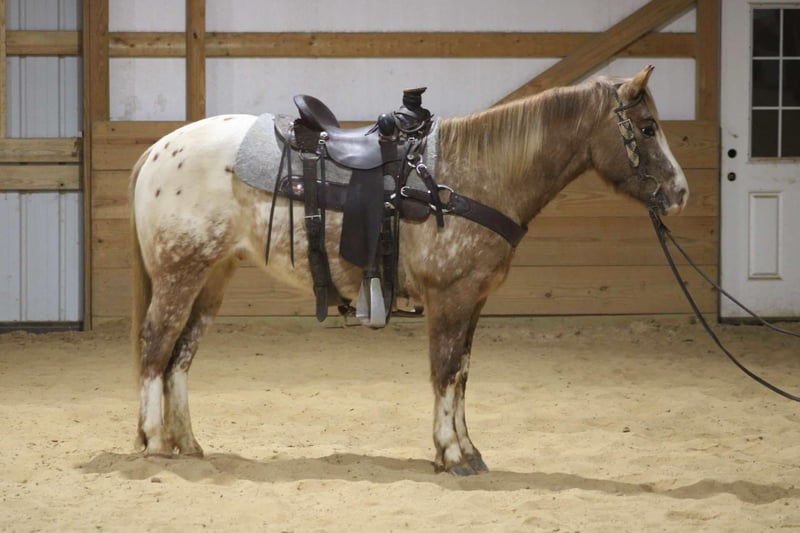 ONLINE AUCTION Place your bids at www.PlatinumEquineAuction.com Starting Bid $3500 Auction ends February 9th, 2025 Need a new saddle? Check out White Rock Saddles on our website or Facebook! Peanut is a 14.2 hand Appaloosa gelding that is built like a little tank! He has lots of conformation to him! Peanut is 6 years old! We have used this little horse out on the trails a ton. He is very laid back and loves the woods! He will go up and down the hills with no problems! He will play in the creek and will stand still while you’re out on the trail taking a break! Peanut has been ridden mostly by a 15 year old girl and she enjoys him very much! He will walk, trot, canter in an arena and he knows his leads! His canter is a little fast at first but he will slow down after the first minute or so! He loves to walk around gentle is his favorite speed but will get up and go fast when asked! He has been ridden around cattle as well! He has checked fences mostly but has also been used to gather cattle and load trucks! He does all the obstacles in the barn and has a lot of ride to him! He will neck rein, back up, and side pass when called upon! Peanut has also been ridden and handled by younger children quite a bit! We feel like peanut would be best suited for a rider that has some confidence because he has some buttons and is well broke! He is a super nice smaller gelding that is the right size for just about anyone! He does well kept in a stall or out on pasture! He is an easy keeper and stays fat year around! If you are looking for a gelding that is good size to get on and off of and that will get you noticed anywhere then he is your guy! We think he is the coolest colored and the most fun horse to ride in the barn! He is sound and has no vices! He is located in Sonora Ky! Feel free to call Clayton Ryan 270-766-2641 with any more questions or concerns! Buy with confidence on this unique horse! ONLINE AUCTION Place your bids at www.PlatinumEquineAuction.com Starting Bid $3500 Auction ends February 9th, 2025 Need a new saddle? Check out White Rock Saddles on our website or Facebook!