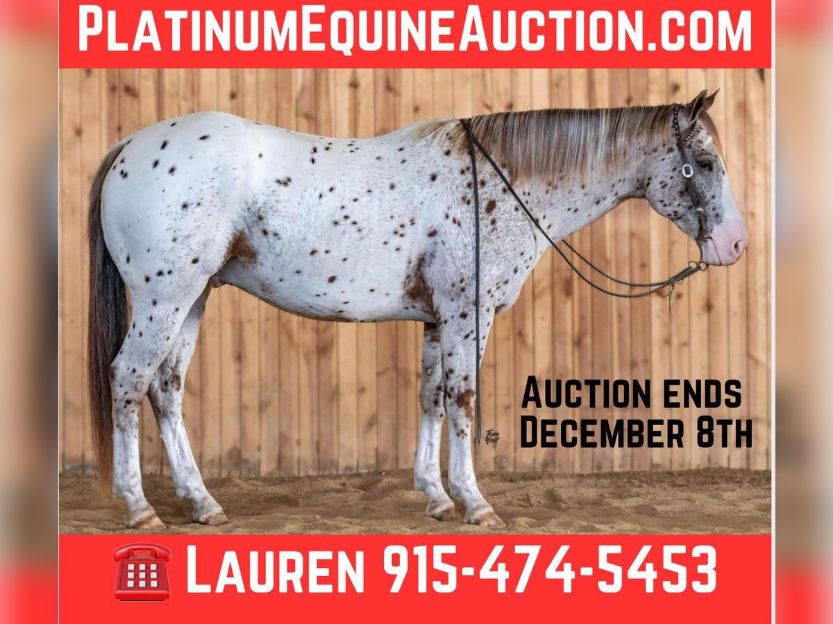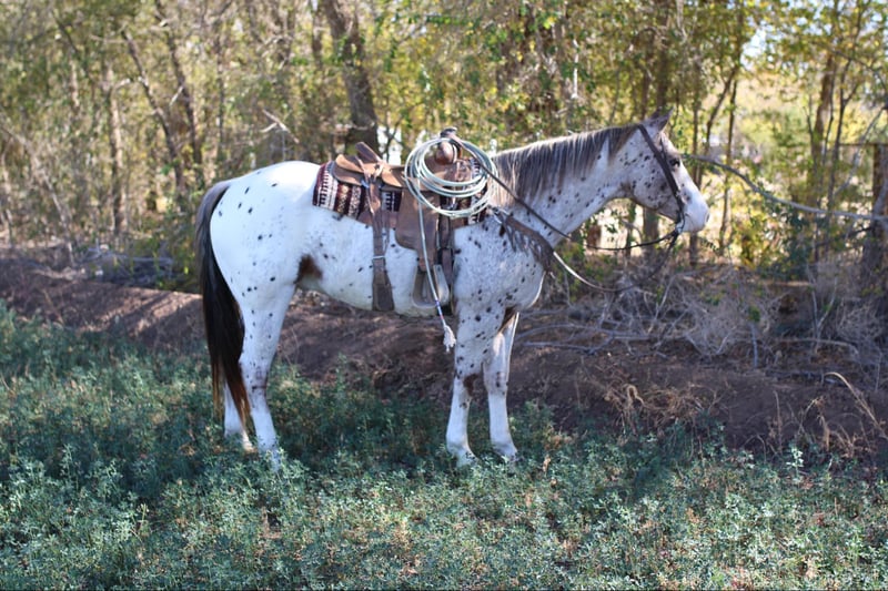 ONLINE AUCTION Place your bids at www.PlatinumEquineAuction.com Starting Bid $3500 Auction ends December 8th, 2024 Need a new saddle? Check out White Rock Saddles on our website or Facebook! Mr. Beans Is a fancy 5 yr old Apaloosa gelding, he stands 15’1 and will stand out anywhere you go. He’s been a joy to have in our program we’ve done a little bit of everything with him . He’s had lots of outside miles in rocky country and sandy hills, he’s extremely sure footed and knows how to travel in tough terrain. We also do a lot of arena riding, from roping the smarty out of the head box or loping circles in both directions. He knows his leads and will pick them up off your leg pressure. Beans is a super smooth traveler and is a comfortable ride. Beans likes party’s he’s been the horse we bring out for the birthday party’s to lead the kids around on. He’s very personable and likes treats and being loved on. We’ve used him on the ranch as well pushing cows from one pasture to another or bringing up roping steers during the practices. He’s an all around safe gelding that would fit anyones family or program. Mr beans is easy to catch, saddle, shoe, load, unload and ties. He will ride through water, rides in traffic, good with dogs, bikes, other animals. He’s pretty laid back and easy going, He’ll be a a standout anywhere he goes. He is 100% sound . Please call for any questions you may have about Mr.beans thank you! Lauren Lara 915-474-5453 Located in El Paso, TX. ONLINE AUCTION Place your bids at www.PlatinumEquineAuction.com Starting Bid $3500 Auction ends December 8th, 2024 Need a new saddle? Check out White Rock Saddles on our website or Facebook!