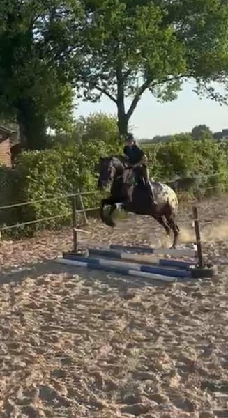 For sale: a stunning Appaloosa gelding, born in 2018. The black coat with distinctive markings makes him stand out, and his friendly, balanced temperament adds to his appeal. Standing at 16.1 hh, he is well-suited for a variety of disciplines. Whether for leisure riding, dressage, or small jumping competitions, this gelding shows great potential and eagerness to learn. He is healthy and well cared for. I am happy to provide more information and invite you for a personal impression.