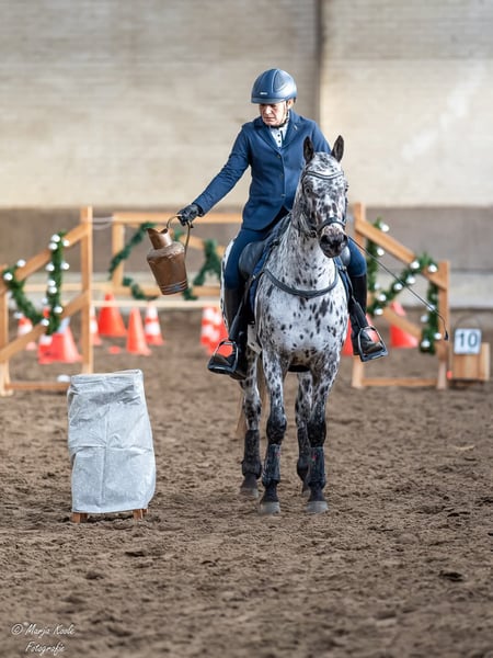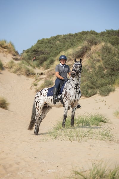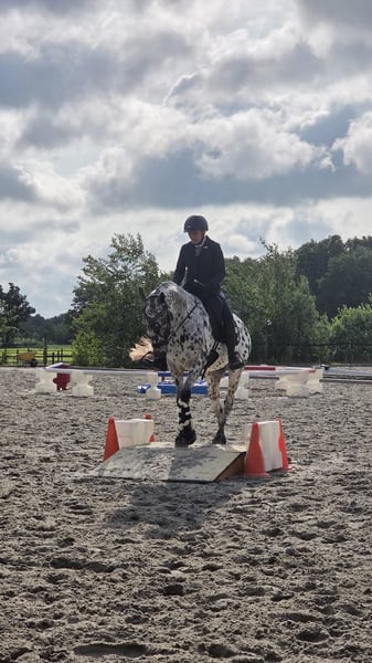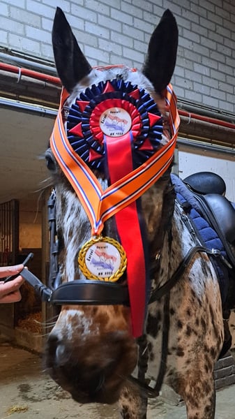 Dit is werkelijk iets aparts! 🤎🤍🖤 7 jarige driekleurige appaloosa E-pony ruin. Met pijn in het hart, maar met zijn geluk voorop gesteld, ben ik (wegens mijn eigen lichamelijke tekortkomingen/artrose) opzoek naar een plek waar Oepsie Design, alias Cookie, echt tot zijn recht komt. Ik heb Oepsie als veulen gekocht en zelf opgeleid, dus zijn hele geschiedenis is bekend. Oepsie is geboren op 18-03-2019 en in het voorjaar van 2022 heb ik hem zadelmak gemaakt, waarna hij daarna nog een seizoen de wei op gegaan is. November 2022 zijn we begonnen met inrijden en in oktober 2023 liep hij zijn eerste working equitation wedstrijd. 2 maanden later werd hij tijdens zijn 2de (meerdaagse) wedstrijd Nederlands Kampioen in de traditionele Working Equitation klasse B2. 🇳🇱 In 2024 werd hij 6e tijdens het Nederlands Kampioenschap Working Equitation en liep hij zijn eerste dressuurwedstrijd in de klasse L2. Afgelopen jaar eindigde hij tijdens het NK Working Equitation in Someren op een 4e plaats en debuteerde hij in de dressuur klasse Z1 tussen de paarden en is hij nu Z1 +3 geklasseerd. Gezien zijn resultaten zou je denken dat Oepsie een bak aan wedstrijdervaring heeft, maar dat is niet het geval. Oepsie is vooral thuis getraind en heeft in het totaal 10 wedstrijden gelopen. Maar zijn resultaten zeggen alles over zijn karakter en kwaliteit! 🔥 7jarige E-pony circa 1.52m 🏆 Z1 +3 (tussen de paarden) 🏅 Working Equitation WE1/2 🤩 Prachtige pony met een eerlijk karakter 🌳 Kan zowel alleen als met een groep op buitenrit ❤️ Braaf op stal, op de trailer en bij de hoefsmid ✔️ Geen stalgebreken en altijd netjes onderhouden 🎓 Geschikt voor een ruiter met ervaring ✅️ Recent röntgenologisch gekeurd incl rug en hals 📜 Hele geschiedenis bekend 💰 tussen de 12,5 & 15🥕 💪 Energiek en werkwillig, heel soms komt bij nieuwe situaties in een vertrouwde omgeving het sensibele van de Appaloosa naar boven 📍 Locatie Nuenen Oepsie zijn welzijn staat hoog in het vaandel en daarom stellen wij hoge eisen aan zijn nieuwe 5⭐️ huis. Oepsie is graag buiten en dat zien we dan ook graag terug op zijn nieuwe adres. Gezien zijn leeftijd, talent en instelling past hij het beste bij een ervaren ruiter die met hem de mooiste avonturen wil gaan maken, maar waarbij het begrip "happy athlete" voorop staat. Wil je meer weten? Stuur dan een bericht! Bij echte interesse staat de koffie klaar. ☕️