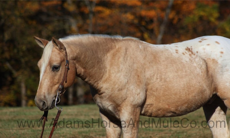 This horse sells in Cannon Falls, MN on February 1st and is consigned to www.NorthStarHorseSale.com you can bid online, bid in person and come preview each horse and ride them yourself before bidding. Shipping is available anywhere in the USA. $5000 starting bid, all horses sell sound. Trash those X-Boxes, Playstations or other video game consoles, kids don’t need to be glued to a TV… Kids need a horse like Pecos Bill!!! Take a look at the coolest little appaloosa horse that you will see! He has it all going for him from that beautiful palomino color, to that pretty LONG mane and tail and don’t forget about that sweet little lope! Pecos Bill is a 5 year old gelding that is standing around 13.3hh. All fall and winter long Pecos Bill has been one of our 6 year old daughters horse and she has trail ridden him, took him camping, had around the ranch and pushed cows with him. Pecos Bill has been the perfect horse for her! Pecos Bill is plenty stout enough to carry an adult as Mom has taken Pecos Bill out on the ranch, where she has pasture roped and doctored sick ones, herded cattle and the kids have ridden down the trails almost daily! Pecos Bill will cross creeks, ditches, logs and navigate rough rocky areas. He has a nice walk, smooth jog, a good slow lope, he reins around and backs as well! He has been exposed to all kinds of wildlife and will go anywhere that he is asked too. He has been ridden many miles in the mountains of Eastern Kentucky and encountered every obstacle possible on the trail. He will go up or down even the steepest slopes, across deep creeks, over downed trees, and over all types of rough terrain while still being sure footed. Pecos Bill will be a family favorite for years to come! Call 606-308-2461 for more info.