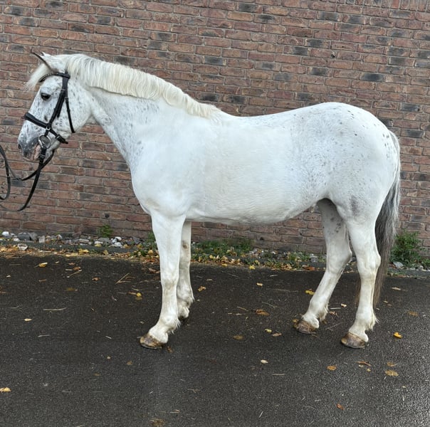 Pinta es una yegua de 11 años con un marcado patrón de coloración y pasaporte. Mide aproximadamente 1,55 m y tiene una complexión robusta. La utilizamos en nuestra escuela de equitación tanto en la cuerda como para los alumnos principiantes y avanzados. Es compatible con otros caballos y está acostumbrada tanto a establos como a caballos en paddock libre. Actualmente lleva 4 herraduras, aunque también puede ir sin herraduras. Está familiarizada con paseos y montar con martingalas. Es cómoda en el asiento y siempre responde bien al galope. No se conocen problemas de salud. La silla y el equipo de montar pueden adquirirse por un precio adicional.