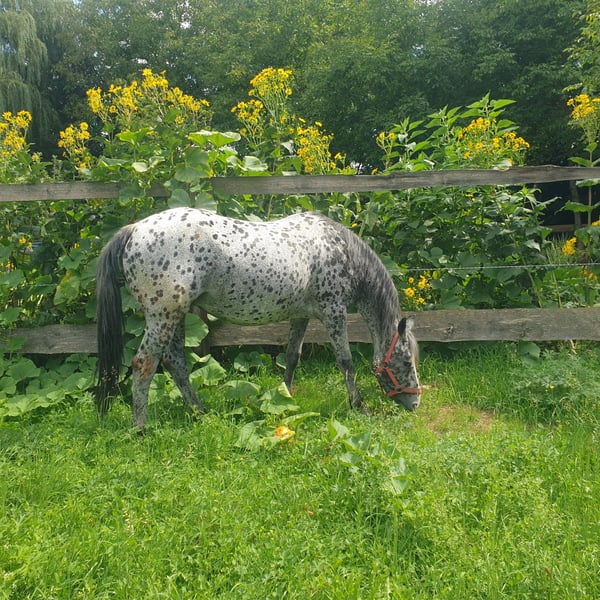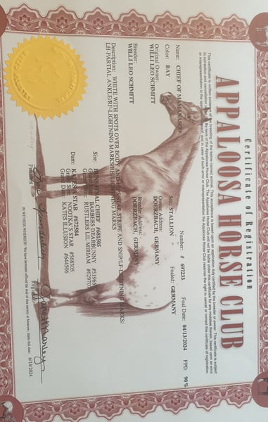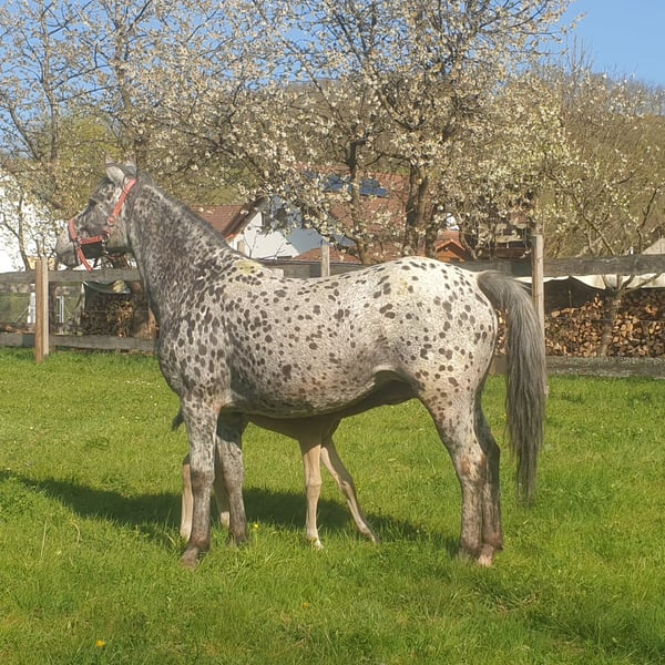 Kates a Star, known as Kati, is a descendant of "Toby 1", thus coming from the famous Toby line. She was always ridden during the time she was not heavily pregnant and did not have a foal at her side. Kate is an excellent mother and is now pregnant again by Buns Final Chief. Her last foal (see pictures) is a buckskin; before that, she had a bay and prior to that, a pinto. She passes on color - depending on the stallion. She has very good hooves, is farrier-friendly and loading-friendly, and is very pleasant to handle. Based on my experiences with her groundwork, I can say that she is smart, learns quickly, and is cooperative. I must part with her due to age and health reasons and will only place her in a good home. During the time she has been with me, Kate has never had any issues; this also applies to foaling and her foals (happy to provide a call with her veterinarian).