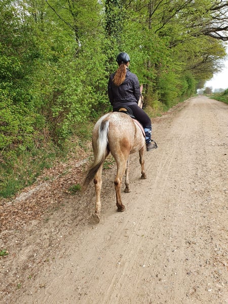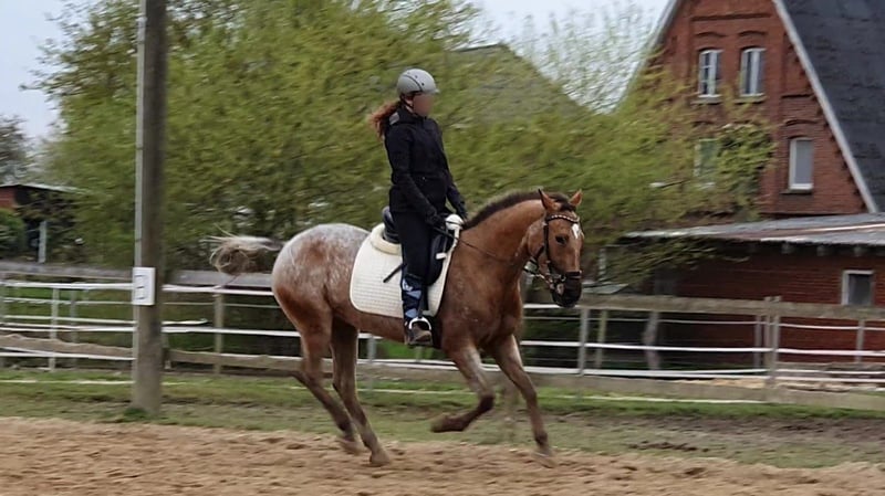 Beschreibung: Liliana ist eine 12-jährige Appaloosa-Mix-Stute mit einem Stockmaß von 1,58 m. Im Umgang ist sie sehr lieb, aber eher sensibel. Sie ist seit 6 Jahren in meinem Besitz und ich verkaufe sie ausschließlich, weil ich ihr zeitlich nicht mehr gerecht werde. Eigenschaften & Ausbildung: Liliana hat Freude an Bewegung und zeigt schöne Gänge. Aktuell wird sie klassisch geritten. Sie kennt es alleine oder in der Gruppe ins Gelände zu gehen, ist dort aber eher noch etwas unsicher. Sie ist sehr lernwillig. Wir machen viel Bodenarbeit mit ihr, bei der sie immer gut mitmacht. Anforderungen: Aufgrund ihrer sensiblen Art ist Liliana kein Anfängerpferd. Ich wünsche mir für sie einen Menschen, der ihr mit viel Geduld und Ruhe begegnet. Wenn man ihr Sicherheit vermittelt und sie erst einmal Vertrauen gefasst hat, ist sie ein treues Freizeitpferd, mit dem man fast alles machen kann. Gesundheit: Liliana wurde die letzten Jahre regelmäßig geimpft und entwurmt. Auch die Zähne und Hufe wurden stets gemacht. Sie ist soweit gesund und fit, weist allerdings ein leichtes Headshaking-Syndrom auf. Bei Stress, stark blendendem Licht oder Polenflug beginnt sie mit dem Kopf zu zucken. Mit einem einfachen Nasennetz ist sie jedoch komplett beschwerdefrei und in keiner Weise eingeschränkt. Haltung: Aktuell steht Liliana tagsüber auf dem Paddock (im Sommer auf der Weide) und nachts in der Box. Ich kann mir aber vostellen, dass sie sich auch ein einem Offenstall wohl fühlen würde. Bei Interesse oder Fragen gerne melden.