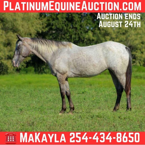 ONLINE AUCTION Place your bids at www.PlatinumEquineAuction.com Starting Bid $3500 Auction ends August 24th, 2025 Need a new saddle? Check out White Rock Saddles on our website or Facebook Meet Jellybean, the 13-year-old Appaloosa mare who’s ready to steal your heart! Standing at a perfect 14.1 hands, Jellybean is the ideal horse for anyone seeking a safe, versatile, and fun-loving riding companion. Whether you’re an experienced trail rider or looking for a gentle horse for your kids, Jellybean is your girl. Jellybean is as safe as they come, making her perfect for riders of all ages and skill levels. On the trails, she’s calm, steady, and always up for an adventure. If you can sit up there and hold her reins you and her will get along! She has absolutely no buck, rear, or kick! And when it’s time for some fun, Jellybean shines in the playday arena. She’s got the smarts and agility to make every ride a blast. Don’t miss out on the chance to own this one-of-a-kind mare that’s not only pretty but in your pocket. She will load/unload like a dream. Stands for the farrier great. Jellybean is more than just a horse; she’s a member of the family waiting to find her forever home. Jellybean is UTD on everything. Come meet Jellybean and discover the joy she can bring to your life like she has ours! Located in Stephenville, TX. Contact MW Horses Makayla 254-434-8650 ONLINE AUCTION Place your bids at www.PlatinumEquineAuction.com Starting Bid $3500 Auction ends August 24th, 2025 Need a new saddle? Check out White Rock Saddles on our website or Facebook