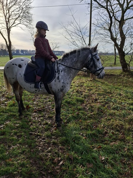For sale by commission: Nelly, a 16-year-old, incredibly sweet Appaloosa mare approximately 15.5 hands tall. She is suitable for children to ride and knows everything that makes a great leisure horse. Whether riding alone or in a group—through the forest, on the beach, or along the road—Nelly enjoys it immensely and also rides very well in the arena or indoor riding hall, whether with pad, western saddle, English saddle, or bareback. Unfortunately, we no longer have enough time for this wonderful mare. No known health issues. Nelly does not have a health certificate but can, of course, be issued upon the buyer’s request. She is also suitable for riding lessons and is very well-behaved in handling. If interested, please contact us. Price on request, under €4,500. A trial ride costs €30, which will be deducted from the purchase price if bought.