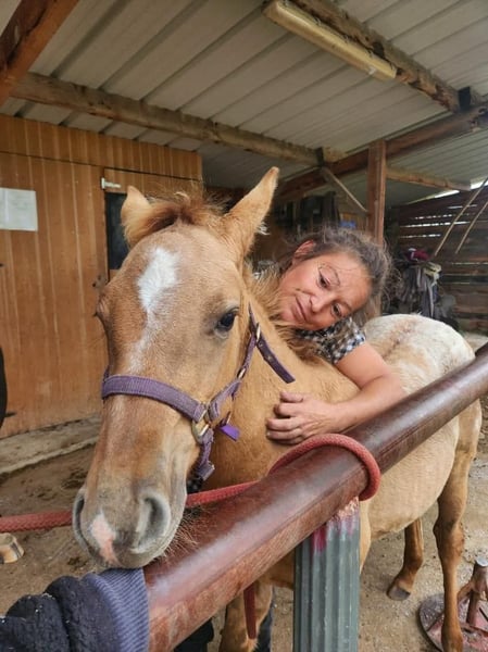 Paytah des Hors, Oc Appaloosa By Malo des Hors: Vanessa des Mescliers (Sonset Jac QGN) and Tanka du Toureau (GBG Eyes Martin) And Atlantide Blue (TF, leisure-selected mare, excellent head mare for outdoor riding, trail riding, mountain trail, and shows) Expected to reach approximately 15.0 hh, with a strong but not heavy build. Negative for Pannel6, Reserved but curious, Lunges, leads well on the halter, weaned.