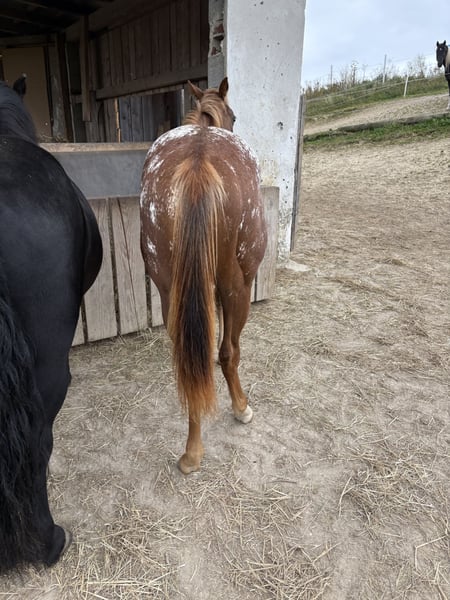 Zum Verkauf steht eine kleine, freche und verspielte Jungstute mit wunderschöner, auffälliger Fellzeichnung. Sie besitzt selbstverständlich einen gültigen Pass, ist geimpft und regelmässig entwurmt sehr brav beim Schmied unkompliziert im täglichen Umgang geht bereits brav mit spazieren zeigt sich lernfreudig und neugierig Missouri steht aktuell im Offenstall und ist dort rangniedrig, auch im Umgang mit gleichaltrigen Pferden. Sie bringt tolle Voraussetzungen für eine Zukunft als Freizeitpartnerin mit und sucht nun ein liebevolles Zuhause, das ihre weitere Ausbildung mit Geduld und Freude begleitet.