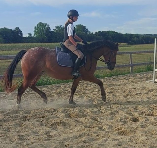 Liebevolle, neugierige Appaloosamixstute sucht ihren Menschen. Bisher wurde sie nur ausgeritten und ansonsten ist sie noch roh. Wer einen Freizeitpartner zum selber ausbilden sucht ist bei ihr richtig.