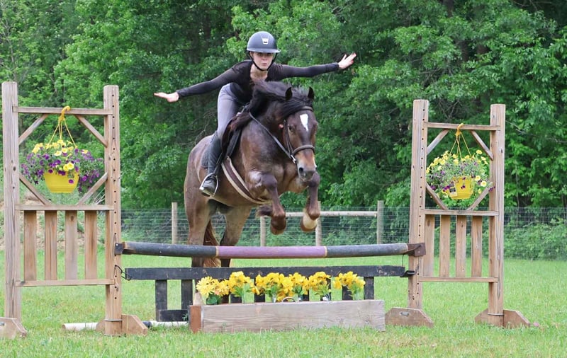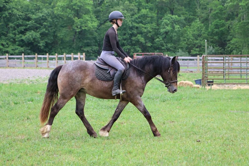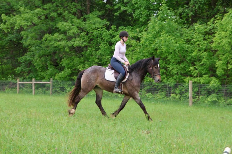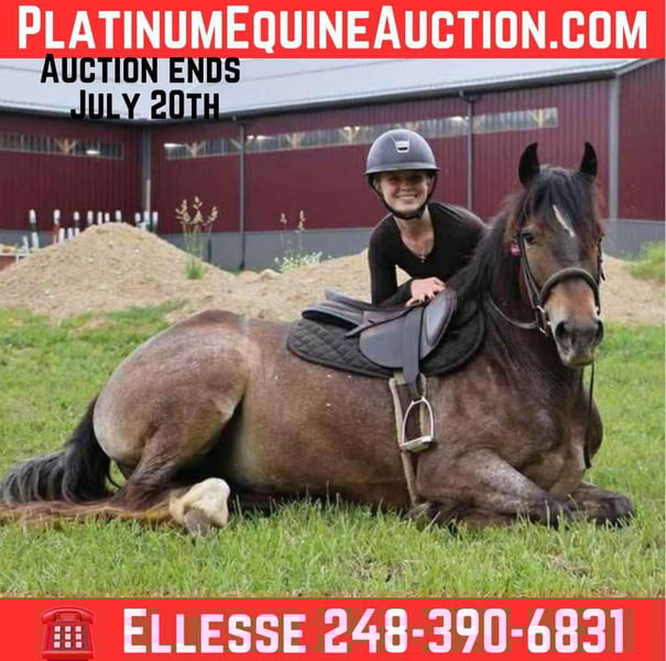 ONLINE AUCTION Place your bids at www.PlatinumEquineAuction.com Starting Bid $3500 Auction ends July 20th 2025 Need a new saddle? Check out White Rock Saddles on our website or Facebook Scarlett is hands down one of the most adorable gypsy vanner Appaloosa crosses you will meet. This little lady stands 14.1hh at 4 years old. She’s got beautiful and unique LP sliver/bay roan with white varnishing covering her. Light feathering covers her legs and she has a beautiful mane and tail. Her conformation is very classic and correct. Scarlett has a petite and pretty face with a kind and expressive eye. Scarlett is full of personality in a good way. She knows all the liberty work and will lay down and sit on command! She’s carried the flag, steeps over tarps, bridges and plays with the giant ball! She can say yes and no and side pass right over to the mounting block! This little lady is always happy to greet you and will stand for hours for grooming. She has had 60 days in harness and has driven across the countryside of Michigan. Under-saddle this girl is a blast!! She walk, trots, and canters with comfort and ease. She comes equipped with effortless transitions both upward and down. She stops on a dime and backs up like a pro. Scarlett moves very well off of seat and leg pressure as well. She has been working in the arena schooling 1st level dressage moves and works with ease and elegance. She’s a smart girl, once you teach her something she gets it’s and comes out the next day aiming to please. We have been having a blast teaching her to jump. Scarlett is jumping small courses in beautiful form and she’s not one to shy from flowers or fill. She holds a nice canter around a course and jumps in great form. She also has very easy flying lead changes. Scarlett has spent many hours out on the trails and she loves an adventure. She will ride out alone or in a group. She’s not phased by cracking brush, thick woods, dirt road traffic, wildlife, steep hills or water. With that being said we think she would be super fun to take out on a hunter pace, or even some lower level eventing. Scarlett is a very special girl. She’s got the movement, mind, and looks to go almost any direction you want to take her! Scarlett lives in Howell, MI. Please call or text Ellesse Schwartz 248-390-6831for more info. ONLINE AUCTION Place your bids at www.PlatinumEquineAuction.com Starting Bid $3500 Auction ends July 20th 2025 Need a new saddle? Check out White Rock Saddles on our website or Facebook