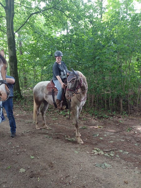 Heel brave en rustige Appaloosa Merrie. Zij heeft een lieve Charakter in omgang met mensen en in de kudde geen merrie gedrag. Is op buiten ritten braaf en rustig. Heeft een aanleg voor cutting en bij grond werken ook veel plezier. Dus ze heeft grondkentnisse onder de zadel. Bij echtem interesse kunnen ook meer infos gegeven worden.