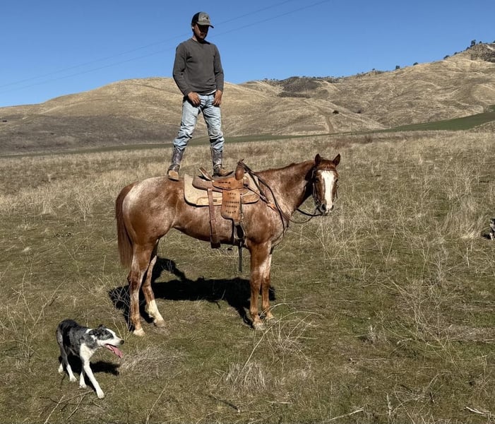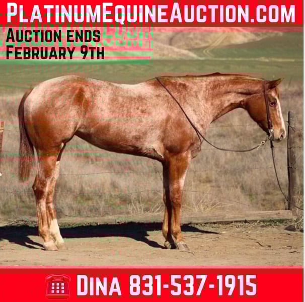 ONLINE AUCTION Place your bids at www.PlatinumEquineAuction.com Starting Bid $3500 Auction ends February 9th, 2025 Need a new saddle? Check out White Rock Saddles on our website or Facebook! CNC Lady Jaye, aka Lady, is a registered champion mare and a stunning Appaloosa. She was foaled on February 26, 2018. She stands a tall drink of water at 16.1 hands and has nice conformation. This girl is fun; she has a nice extended trot and carries herself well. She is well suited to be an English horse with her fluid movement. Lady has been used for trail riding and has been very easy to handle. She will walk up or down any trail, navigates downed trees, brush, ditches and crosses water while remaining calm. She is a friendly horse that is gentle and willing to try new things. She has gathered cattle and has also been used to check fences on the ranch. Lady has been shown in some halter classes and was a weanling champion, also placing in several other halter champion titles. She has also dabbled in some 4-H shows in trail and equitation, and has shown successfully in halter. If you are wanting to dabble in a little bit of everything, she would be a great choice for you. In the arena, she picks up her leads, has a smooth stop, and a naturally collected backup. Her movement is very fluid and pretty. She is ready to go in any direction you would like to take her. She is super willing, has no silliness to her, and just wants to be your friend. Lady has done obstacles such as tires and bridges, all with ease, and is really taking a liking to it. She is easy to shoe, clip, and bathe. She loads and hauls great and has no bad habits. Please contact Longhorn Ranch, Dina, located in Paicines, CA, at 831-537-1915. ONLINE AUCTION Place your bids at www.PlatinumEquineAuction.com Starting Bid $3500 Auction ends February 9th, 2025 Need a new saddle? Check out White Rock Saddles on our website or Facebook!