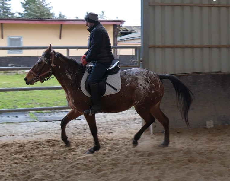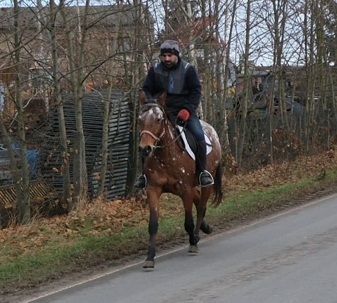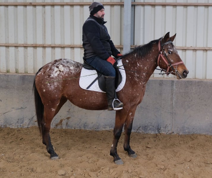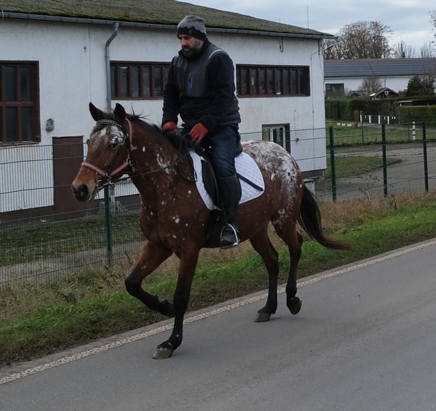 Eenvoudig en probleemloos te rijden merrie, braaf in de omgang en gemakkelijk in gebruik. Veilig in het verkeer en op het terrein. 9 jaar oud, 1,54 m hoog. Bij interesse graag bellen, geen e-mail! Geen garantie op eventuele fouten in de beschrijving! Tel.: 0173-3843407 Omdat het om een levend dier gaat, zijn dit subjectieve indrukken van de aanbieder en geen gegarandeerde eigenschappen van het paard! Altijd mooie rij- en vrijetijdspferden, evenals nieuwe koetsen van diverse modellen, voordelig te koop. Adres stal: 99628 Buttstädt, Oberwendenstraße 39