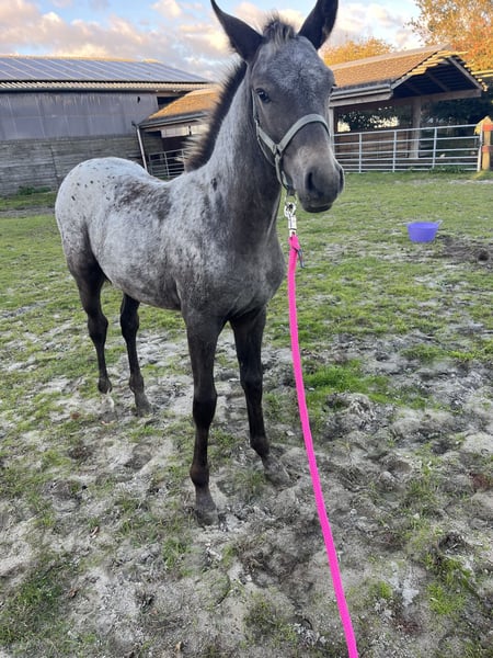 Pouliche à vendre / Jument fillette en coloration spéciale Je cherche une nouvelle famille pour ma pouliche après le sevrage. Amira est née le 26/05/2025. Sa mère est une appaloosa-mix (environ 1,55 m). Son père (non inscrit) est un Holsteiner (Cocosinni / environ 1,71 m). J'ai acheté la jument sans connaître sa gestation, je ne possède donc pas de certificat de saillie. Les informations concernant le père proviennent de l'ancienne propriétaire. Amira est une pouliche élégante avec de longues jambes remarquables. Sa coloration spéciale lui vient de sa mère et en fait une véritable attraction. Elle apprend le vocabulaire de base, se promène avec sa mère (même en bord de route). Elle a déjà rencontré le maréchal-ferrant et a même expérimenté un traitement osteopathique doux lorsqu'elle accompagnait sa mère. Cette jeune dame élégante sait se présenter, elle est polie dans ses interactions, mais doit aussi apprendre à poser ses limites. Elle est d'abord un peu méfiante envers les étrangers, mais sa curiosité prend rapidement le dessus. Je cherche une famille qui pourra offrir à Amira un environnement idéal pour son avenir. N'hésitez pas à me contacter si vous avez des questions.