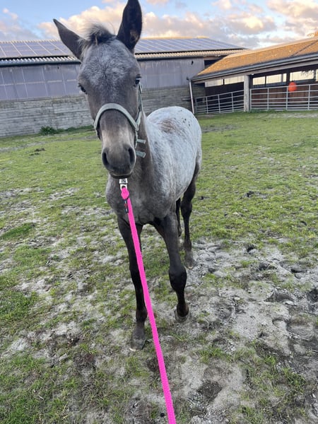 Absetzen / Stutfohlen in Sonderlackierung zu verkaufen Ich suche für mein Fohlen nach dem Absetzen ein tolles neues Zuhause. Amira ist am 26.05.2025 geboren. Ihre Mutter ist eine Appaloosa-Mix (ca. 155 cm groß) Ihr Vater (welcher nicht eingetragen ist) ist ein Holsteiner (Cocosinni/ ca 171cm ) Die Stute habe ich unwissenden tragend gekauft, daher habe ich keinen Deckschein, die Angaben zum Hengst stammen von der Vorbesitzerin. Amira ist ein elegantes Fohlen mit auffällig langen Beinen. Ihre Sonderlackierung hat sie von ihrer Mutter geerbt und macht Sie zu einem echten Hingucker. Das Fohlen ABC lernt sie kennen, spazieren gehen mit ihrer Mutter (auch an der Straße). Den Hufschmied hat Amira schon kennengelernt und auch schon mal in eine sanfte osteopatische Behandlung geschnuppert, als ihre Mutter behandelt wurde. Diese elegante junge Dame weiß sich zu präsentieren, im Umgang ist sie höflich, muss aber auch mal ihre Grenzen aufgezeigt bekommen. Fremden Menschen gegenüber ist sie zuerst etwas skeptisch, dann siegt sehr schnell die Neugierde. Ich suche ein passendes Zuhause für Amira, wo Sie optimal auf ihr weiteres Leben vorbereitet werden kann. Bei Fragen, meldet euch gerne bei mir.
