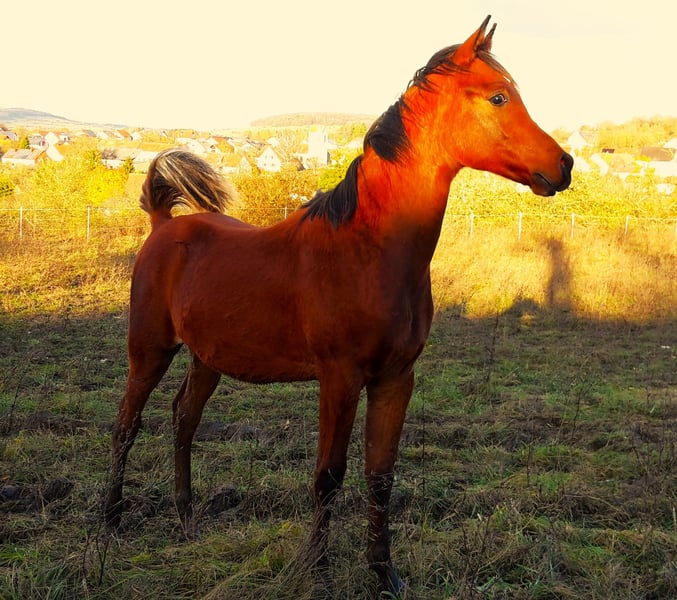 Typvoller edler Asil Araber Hengst mit besten GGA für Zucht, Sport und Freizeit - Braun ohne Abzeichen, 4 schwarze Hufe - Widerristhöhe (derzeit ca.) 148 cm - geb. 01.05.2023 - Mutter- Linie: KR (Kohailan Rodan) - allerbeste Abstammung AUTHENTIC IBN NAWAAL prämiert, MAYSOUN Elitehengst, AK NAWAAL Elitestute, MULAYH IBN MAAREESA, MESSAOUD Elitehengst, ANSATA AMIR ZAMAN ANSATA HALIM SHAH - super brav und umgänglich - ein Pferd, das auf die Hand geht - herausragendes Gangwerk (Deutlich über die AUTHENTIC IBN NAWAAL- Linie geprägt) - schmiede- und Verladen fromm Verkaufspreis: VHB 8.200,- Euro