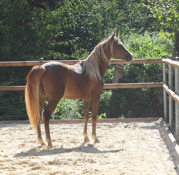 **For Sale: Exceptional Asil Arabian Mare** RFH MAHA Für mich vereint Maha alle Voraussetzungen und Eigenschaften eines (ägyptischen Vollblut-)Arabers. Besonders wichtig ist mir der Charakter. Die “Besten” Araber wurden seinerzeit von dem Beduinen nachts mit ins Zelt genommen - sie gehörten zur Familie. Sie wissen sich an die Dynamik ihrer Menschen anzupassen, sie verstehen Zuspruch und Mahnung. Ein reiner Araber liebt seine Familie und sieht kleine Menschen gleich Fohlen an. Er achtet und schätzt seinen Menschen, wenn diese auch ihm mit Respekt und Liebe entgegentreten. Maha ist ein wahrer Schatz, es ist eine wahre Freude, ihr wunderschönes Gesicht täglich im Stall zu sehen. Sie liebt ihren Menschen, geht brav auf den Anhänger, Spazieren, ist schmiedefromm und Herzensgut 🥰 Introducing a remarkable Asil Arabian mare, born in 2023, who is sure to capture your heart and elevate your equestrian pursuits. This stunning chestnut beauty stands at 145 cm and embodies the grace and endurance that the Arabian breed is renowned for. With a lineage steeped in tradition and excellence, this young Mare is not only a striking presence but also possesses the stamina and resilience ideal for endurance riding. Her spirited yet gentle temperament makes her an excellent companion for riders of all levels. Whether you’re looking to compete or simply enjoy the beauty of this magnificent breed, this Asil Arabian Mare is ready to grow into the friend that will carry you on new adventures. Don’t miss the chance to own this exceptional horse! For more information or to schedule a visit, please don't hesitate to contact us!