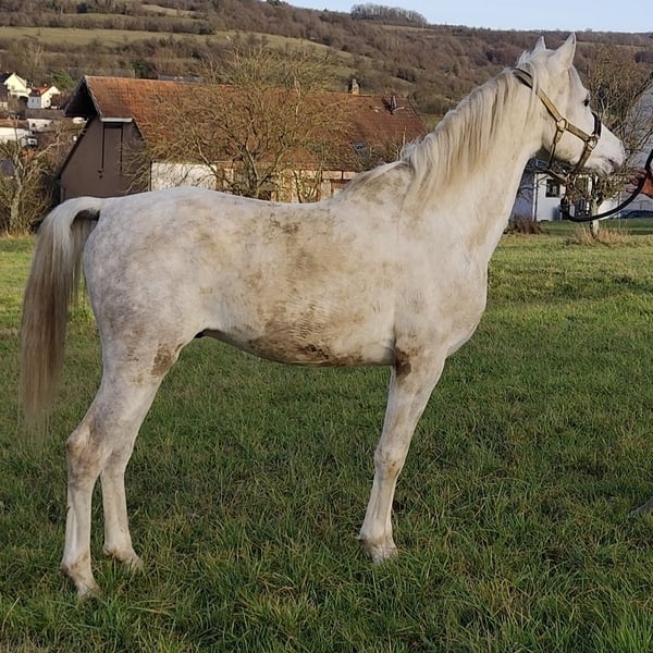 - Etalon Asil Arabe typé et charismatique pour l'élevage, le sport et les loisirs - ASIL ARABER (purement égyptien/ straight egyptian) - Lignée M : SG (Saklawi Gidrani) - Meilleure ascendance : (ANSATA AMIR ZAMAN, AUTHENTIC IBN NAWAAL (primé), MESSAOUD étalon d'élite, MAYSOUN étalon d'élite, MADKOUR, MORAFIC) - Grands yeux - beaucoup d'expression dans le visage - très intelligent, très attentif et docile - très présent (sait parfaitement se mettre en scène) - longues épaules - encolure haute, longue et courbée avec un haut degré de redressement - un fondement super correct (dans le type carré) - croupe longue - articulations fortes et bons sabots - super GGA (très bonne démarche) - très proche de l'homme et très affectueux - salue ses congénères de loin - super sociable, avec qui on peut tout faire - fort nerveusement (un roc dans la tempête !) - facile à forger et à charger - un cheval au caractère exceptionnel - les 3 dernières photos montrent sa magnifique mère AL CHADIM GAZIA Prix de vente : VHB 8500,- Euro -
