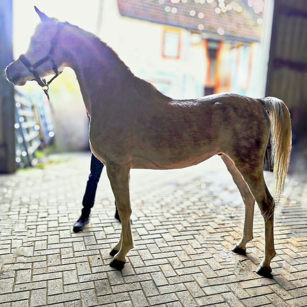 - Typical, charismatic Asil Arabian stallion for breeding, sport and leisure - ASIL ARABER (straight egyptian) - M-line: SG (Saklawi Gidrani) - very best pedigree: (ANSATA AMIR ZAMAN, AUTHENTIC IBN NAWAAL (premium), MESSAOUD elite stallion, MAYSOUN elite stallion, MADKOUR, MORAFIC) - Large eyes - very much expression in the face - highly intelligent, very attentive and docile - very present (knows how to put himself in the limelight) - long shoulder - high set, long, curved neck with high erection - super correct foundation (square type) - long croup - strong joints and good hooves - Super GGA (very good walk) - Very people-oriented and affectionate - greets his fellow human beings from afar - super sociable, you can do everything with him - strong nerves (a rock in the surf!) - easy to forge and load - a horse with an extraordinary character - the last 3 photos show his beautiful mother AL CHADIM GAZIA Sales price: VHB 9.000,- Euro -