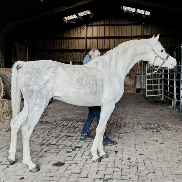 - Typische, charismatische Asil Arabische hengst voor de fokkerij, sport en vrije tijd - ASIL ARABER (recht Egyptisch) - M-stam: SG (Saklawi Gidrani) - Zeer beste afstamming: (ANSATA AMIR ZAMAN, AUTHENTIC IBN NAWAAL (premie), MESSAOUD elite hengst, MAYSOUN elite hengst, MADKOUR, MORAFIC) - Grote ogen - veel expressie in het gezicht - zeer intelligent, zeer attent en volgzaam - zeer aanwezig (weet zichzelf in de schijnwerpers te zetten) - lange schouder - hoog aangezette, lange, gebogen hals met hoge oprichting - super correct fundament (vierkant type) - lange croupe - sterke gewrichten en goede hoeven - Super GGA (zeer goede stap) - Zeer mensgericht en aanhankelijk - begroet zijn buren al van verre - super sociaal, je kunt alles met hem doen - Sterke zenuwen (een rots in de branding!) - makkelijk te smeden en te laden - een paard met een buitengewoon karakter - de laatste 3 foto's tonen zijn mooie moeder AL CHADIM GAZIA Verkoopprijs: VHB 8500,- Euro -