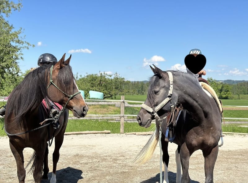 Amir is a particularly handsome, sensitive, and affectionate gelding with a lot of charm. He has already been ridden both on the arena and in the field. During rides, he often accompanies us as a lead horse. Unfortunately, Amir has a mild issue at the origin of his stay apparatus, which means he is no longer suitable for intensive riding. Instead, he loves walks and groundwork. He is very eager to learn and would surely enjoy any additional form of attention. This chestnut gelding is very cuddly, intelligent, and thrives with clear, loving handlers who appreciate gentle communication. He is currently kept in a small private open stable in the Chiemgau region, with a family environment. He is barefoot and well cared for overall.