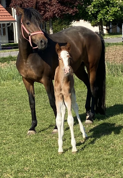 Yamila was born in May of this year as the second foal of our self-bred Arabian Berber mare Qashkayah. Her mother is both a premium and performance mare registered with the VFZB. Her sire also resides with us and is entered in the VFZB stud book; he is currently being prepared for the 2026 stallion performance test and is trained in a classical baroque style. Through her maternal grandmother, who also lives with us, Yamila has a 25% Arabian Veredung (AV) bloodline. She is very typical of the Berber type: very human-oriented, calm, curious, and eager to learn quickly. In our small, age-diverse Berber herd, she adapts well, is open and friendly towards other horses, and has already been introduced to other animals here with curiosity. She enjoys accompanying her mother on short rides as a lead horse and is already getting to know her environment. We would be happy to arrange a viewing appointment with you.