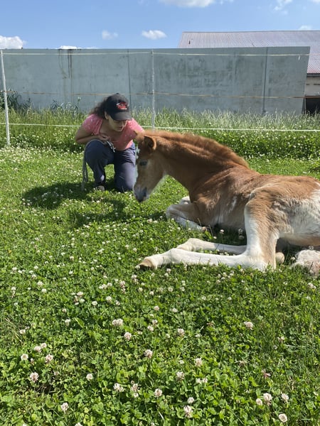 Yamila wurde im Mai diesen Jahres als zweites Fohlen unserer selbst gezogenen Araber Berber Stute Qashkayah geboren. Ihre Mutter ist sowohl Prämien als auch Leistungsstute im VFZB. Auch ihr Vater lebt bei uns und ist im Hengstbuch des VFZB eingetragen, er wird im Moment auf die Hengstleistungsprüfung 2026 vorbereitet und klassisch barock ausgebildet. Yamila hat über ihre Großmutter mütterlicherseits, die ebenfalls bei uns lebt, 25% AV Anteil. Sie ist berbertypisch sehr menschbezogen, ausgeglichen, neugierig und lernt gerne und schnell. In unserer kleinen altersgemischten Berberherde kommt sie gut zurecht, ist anderen Pferden gegenüber aufgeschlossen und freundlich, auch andere Tiere hat sie hier schon neugierig kennen gelernt. Gerne geht sie als Handpferd mit ihrer Mutter auf kleine Ausritte und lernt schon ihre Umwelt kennen. Gerne können Sie mit uns einen Termin zum Kennenlernen mit uns vereinbaren.