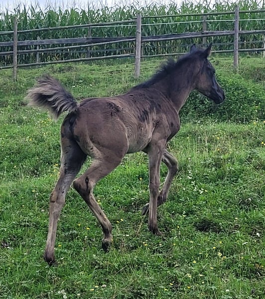 For sale is a beautiful Egyptian Arabian colt, born in March 2025. This elegant black stallion impresses with his noble appearance and charming character. He is a curious little guy and has a friendly demeanor with people and other horses. If you are interested or need more information, we look forward to your message!