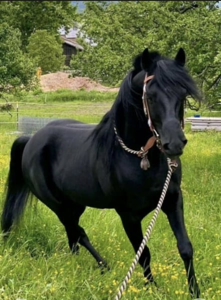 Wunderschöner Vollblutaraber-Wallach (Rappe), 12 Jahre – Freizeit- & Wanderreitpferd Zum Verkauf steht ein bildhübscher 12-jähriger Vollblutaraber-Wallach in der seltenen und eleganten Farbe Rappe. Mit seinem ausdrucksstarken, Erscheinungsbild und seiner tollen Präsenz ist er ein echter Hingucker. Er ist 2014 geboren und kam 7-jährig zu mir. Er war damals so gut wie roh und ich habe ihn zum Freizeit-Partner ausgebildet. Er ist kerngesund- sein Bewegungsapparat funktioniert einwandfrei und er hatte nie Probleme. Allgemein ist er eher der gemütliche und stämmige Typ, obwohl er ein Vollblüter ist. Er ist bei Lektionen sehr motiviert und eifrig dabei, wenn ihm eine Aufgabe Spaß macht und er verstanden hat, um was es geht. Besonders viel Spaß hat er an ,,Denk-Aufgaben". Er ist kein Anfängerpferd, da er schon manchmal frech sein kann und auch mal klare Ansagen braucht. Gelegentlich zeigt er einen kleinen Dickkopf und testet auch mal seine Grenzen. Aber eher bei Reitbeteiligungen, die nicht täglich mit ihm arbeiten. Er bindet sich eng an „seinen“ Menschen und zeigt sich im Alltag aufmerksam. In der Herde ist er eher ranghoch, aber verträglich. Unter dem Sattel überzeugt er mit tollen, sehr angenehm zu sitzenden Gängen. Im Gelände geht er in der Gruppe sehr zuverlässig und macht viel Freude. Alleine ausreiten mag er nicht so gerne – hier braucht er Sicherheit durch seinen Reiter. Er läuft barhuf, bei längeren Ritten mit Hufschuhen vorne. Er wird bei uns im Bambini- bzw. Kinderreiten eingesetzt und zeigt sich dort geduldig. Wichtige Infos: 12 Jahre alt Stockmaß: 1,46 m Kein Gewichtsträger Eher ranghoch, aber gut in die Herde integriert Sattel und Zaumzeug können bei Interesse mit erworben werden Nur in beste Hände abzugeben. Verhandlungsbasis. Bei ernsthaftem Interesse freue ich mich über eine Nachricht.