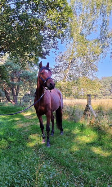 Curvin ist ein lieber 4-jähriger Wallach von etwa 1,53 m. Vor einigen Monaten haben wir ihn mit viel Ruhe an das Satteltraining herangeführt, was er super gut und brav angenommen hat. Sein Vater ist der bekannte vielseitige Hengst Vis di Gallura, der in der Vielseitigkeit, Dressur, Springen und im Gelände erfolgreich ist. Curvin ist daher wirklich der perfekte Allrounder! Curvin ist sehr menschenbezogen und ausgeglichen, zudem sehr sozial zu anderen Pferden und Tieren. Aufgrund seines Alters ist er nicht für einen Anfänger geeignet, könnte aber gut als Familienpferd oder für einen jungen Reiter mit Erfahrung geeignet sein. Er geht oft mit auf Ausritte, sowohl alleine als auch zu zweit. Bei uns steht er den ganzen Tag draußen zusammen mit zwei anderen Ponys (Stute und Wallach). Wir suchen ein Zuhause, wo er viel draußen sein kann, da er viel Bewegungsdrang hat und sich im Stall langweilt. Auch nach mehreren Wochen der Ruhe kann man problemlos wieder auf ihn aufsteigen. Er geht nur an den richtigen Platz und fällt in die normale Preiskategorie. Wenn du Interesse hast, schick gerne eine Nachricht!