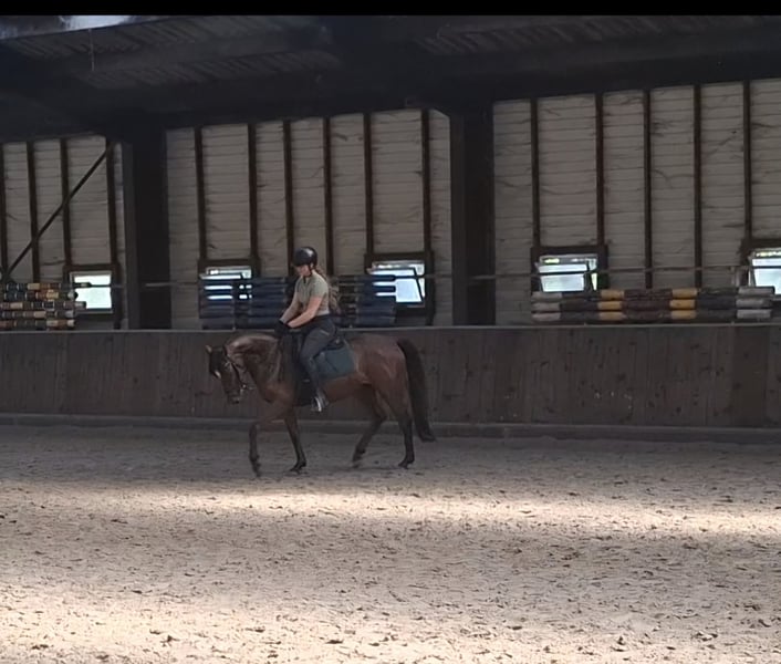 Curvin is a sweet 4-year-old gelding standing at around 1.53 m. A few months ago, we backed him with a lot of patience, and he took to it super well and calmly. His sire is the well-known versatile stallion Vis di Gallura, who excels in endurance, dressage, show jumping, and eventing. Therefore, Curvin is truly the perfect all-rounder! Curvin is very people-oriented and level-headed, and he is also very social with horses and other animals. Given his age, he is not suitable for a beginner, but he would be great as a family horse or for a young rider with experience. He often goes out on trail rides, both alone and with a companion. With us, he spends the whole day outside with two other ponies (a mare and a gelding). We are looking for a home where he can be outside a lot, as he has a lot of energy and gets bored in the stable. Even after standing still for a few weeks, you can get back on him without any problems. He is only going to the right place and falls within the normal price range. If you are interested, feel free to send a message!