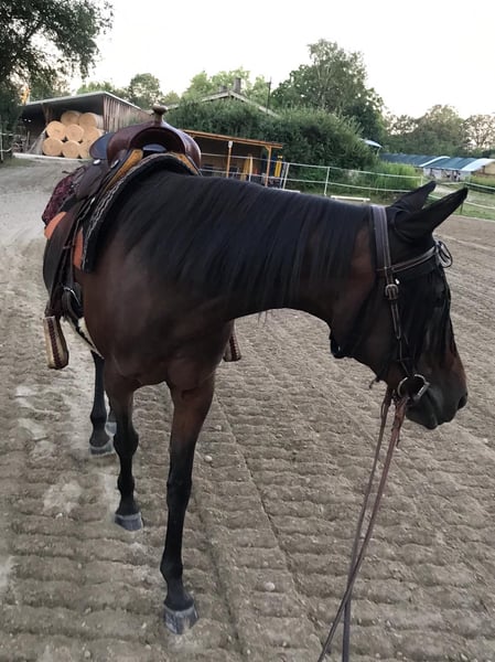Araber-Mix, 24 Jahre, ca. 155 cm Meine liebe Stute Amy (Araber-Mix, braun, ca. 155 cm) sucht ein schönes neues Zuhause. Sie ist ca. 24 Jahre alt, brav, sensibel und unkompliziert im Umgang. Durch ihren ausgeglichenen Charakter ist sie absolut anfängerfreundlich und eignet sich wunderbar als Freizeitpferd. Amy ist fertig ausgebildet und wurde überwiegend im Western- und Freizeitreiten eingesetzt. Sie geht zuverlässig ins Gelände und macht auch Einsteigern viel Freude. Gesundheitlich ist sie gut versorgt: Sie wird regelmäßig geimpft, entwurmt und vom Hufschmied betreut (barhuf). Ihr Allgemeinzustand ist ihrem Alter entsprechend fit. Ein Equidenpass ist selbstverständlich vorhanden. Aktuell lebt Amy im Offenstall in gemischter Herde, wo sie rangniedrig und sehr verträglich ist. Sie ist brav beim Schmied, unkompliziert im täglichen Umgang und schätzt artgerechte Haltung. Standort: 77866 Preisvorstellung: 1.200 € VB Eine Besichtigung und Probereiten sind nach Absprache jederzeit möglich Zubehör wird mit abgegeben Verkauf erfolgt schweren Herzens aufgrund Zeitmangel, da ich Amy nicht mehr gerecht werden kann. Amy sucht ein liebevolles Zuhause, in dem sie weiterhin viel Zuwendung und Bewegung bekommt.
