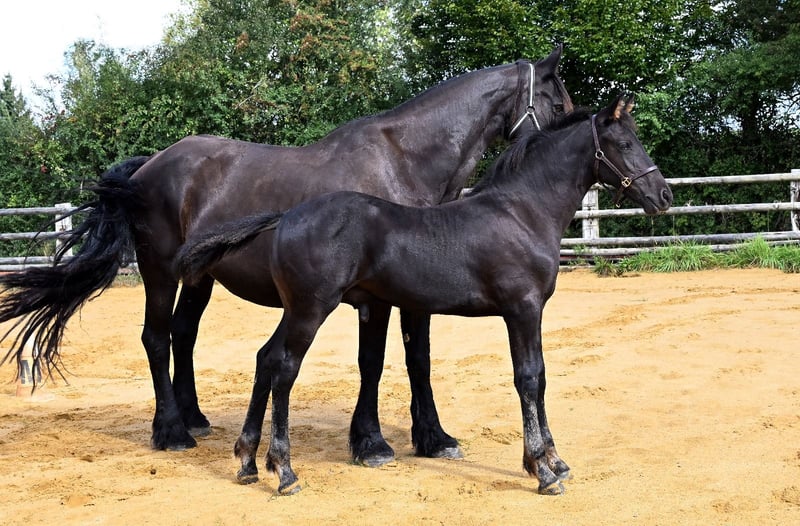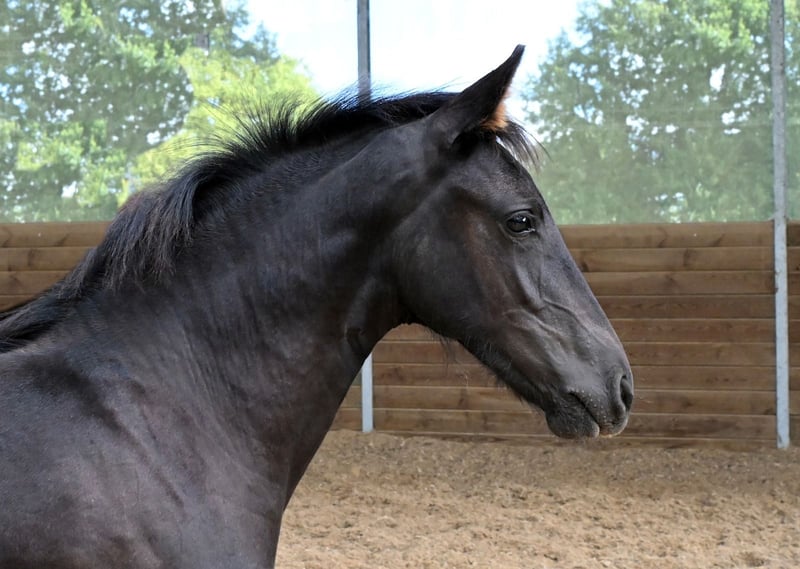 Chams ist ein Hengstfohlen, geboren im Mai 2025. Sein Vater ist der zugelassene Hengst Hermès Look DP, seine Mutter eine Friesenstute namens Adeline du Perche. Chams ist gut im Umgang, alle Impfungen, Wurmkuren und Hufpflege sind aktuell. Er ist gerade erst entwöhnt und sofort verfügbar. Er vereint gute Bewegungen mit einem sehr schönen Exterieur und einem ausgeglichenen Temperament. Besichtigung nach Terminvereinbarung auf dem Gestüt möglich.