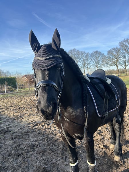 Te koop aangeboden: de prachtige Arabo-Fries merrie Jente. Gegevens: Naam: Jente Geslacht: Merrie Geboren: 20-06-2016 Vader: Wietse 462 Moeder: Thea J. Moedersvader: Yk Dark Danilo Stokmaat: ca. 1.68 m Over Jente: Jente is een mooie, rastypische merrie met een fijne afstamming en een elegante uitstraling. Ze is recreatief gereden, maar heeft de afgelopen weken wat minder training gehad vanwege tijdgebrek. Om deze reden is het belangrijk dat een nieuwe eigenaar haar rustig en correct weer oppakt. Jente is werkwillig, leergierig en prettig in de omgang. Ze heeft veel energie en is daarom minder geschikt voor een beginnende of onzekere ruiter. Ze heeft een ruiter nodig die duidelijk en consequent leiding geeft. Met de juiste begeleiding laat ze zich fijn rijden en toont ze haar kwaliteit. Daarnaast is Jente bekend met grondwerk en is ze academisch opgeleid, wat haar extra interessant maakt voor ruiters die hier verder mee willen werken. Jente is een eerlijk paard met veel potentie en zal nooit gemeen gedrag vertonen. Overig: Keuren toegestaan (kosten koper) Locatie: Gaanderen, Gelderland Voor meer informatie of filmpjes, stuur gerust een bericht.
