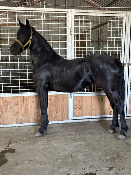 **For Sale: Stunning Arabo-Friesian Mare** Introducing a beautiful Arabo-Friesian mare, born in 2024! This exquisite black beauty stands at 150 cm and is sure to turn heads wherever she goes. With her impressive lineage, this mare is not only a striking addition to any stable but also a fantastic prospect for breeding. Her unique blend of Arabian elegance and Friesian strength makes her a versatile choice for various disciplines, whether you're looking for a show partner or a cherished companion. She boasts a gentle temperament, making her suitable for riders of all levels. With proper training and care, she has the potential to excel in both performance and breeding. Don’t miss the opportunity to own this exceptional mare! For more information and to arrange a viewing, please contact us today. Contact via WhatsApp +36708820041 or email laurakokavecz728@gmail.com