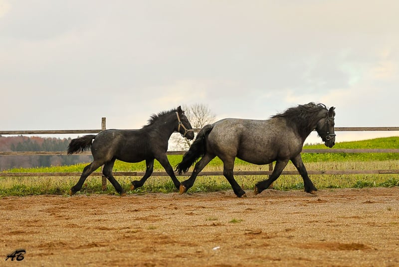 Matze, born on April 26, 2025, is a Palatine-Ardenner colt in the highly sought-after blue roan (blue dun) color, available for sale. His sire is Mannheimer, and his dam is Belina by Eldorado. Matze is a friendly and calm foal, with an approximate final height of 155-157 cm. We are looking for a place where he can grow up among other foals. He is familiar with basic foal handling and is ready for the next step in life. Please contact us at 01776933995.